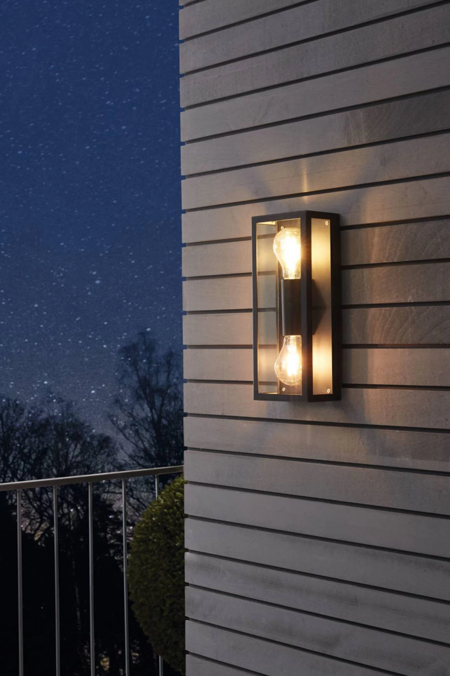 Inspired by industrial style with a touch of retro flair, the Alamonte 1 is an exterior wall light. The Alamonte 1 has dual light sources and requires 2 x E27 lightbulbs. Add vintage-inspired lightbulbs to enhance the retro style, or use Smart Lighting for security and ambience. The Alamonte 1 has a rectangular caged design with clear glass shades. With its zinc-plated steel finish and IP44 rating, the Alamonte 1 is a stylish and durable choice for outdoor lighting. This light is IP44 rated, suitable for exterior use. Standard 2 year warranty.