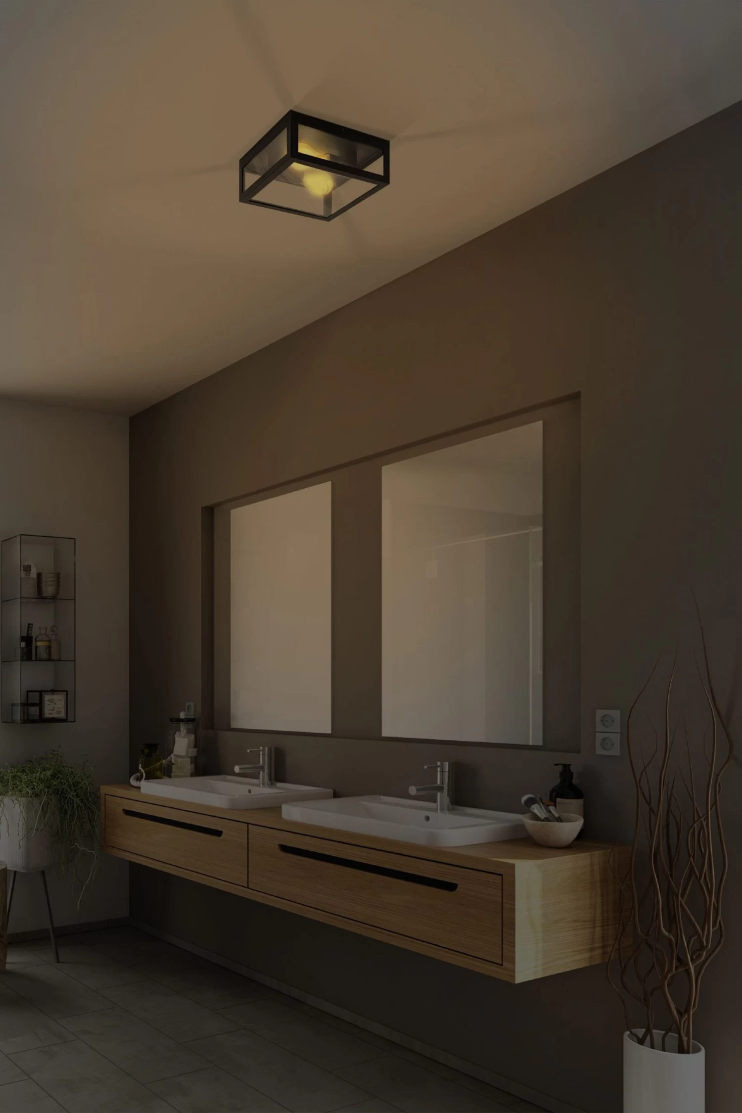 The Amezola can be used as a wall or ceiling light and is suitable for bathroom lighting due to its IP44 rating. The fitting exudes an industrial-chic design with its black steel cage and clear glass panes. The product has a visible lightbulb design and requires 2 x E27 illuminants. To emphasise the retro feel, choose large vintage-inspired lightbulbs! This light is IP44 rated, suitable for exterior use. Standard 2 year warranty.