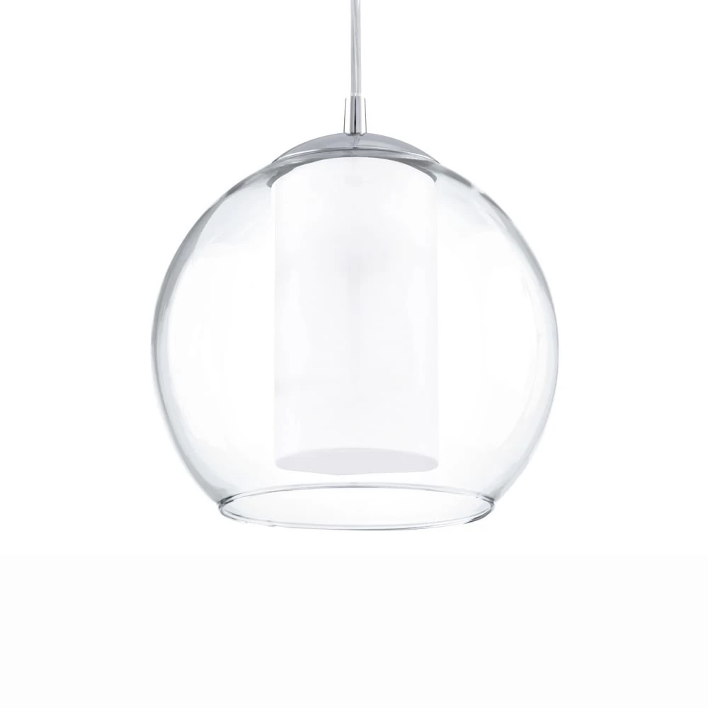 The Bolsano glass globe pendant light brings a touch of class to any room. Constructed of a clear glass globe which has an inner white glass diffuser