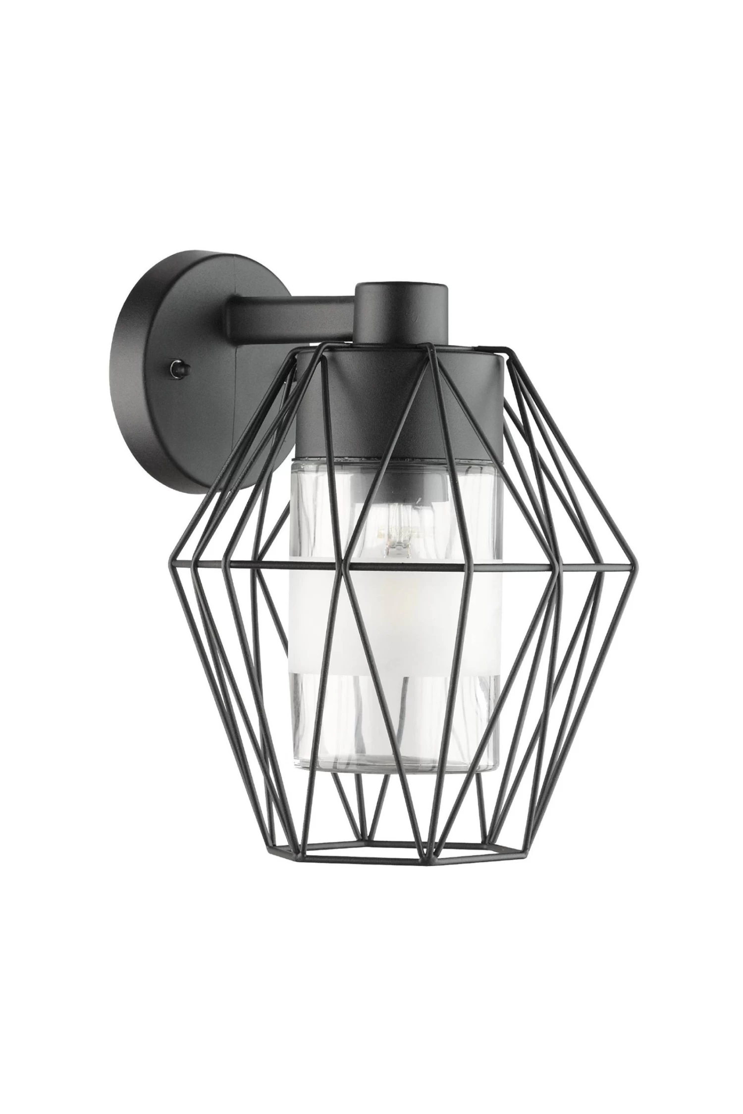 The Canove is a contemporary exterior wall light. The fitting has a circular base with a geometric caged shade and an inner satin glass cylindrical shade. With its black zinc-plated steel finish and IP55 rating, the Canove is ideal for outdoor lighting. The fitting requires 1 x E27 lightbulb and can be corner mounting if needed. This light is IP55 rated, suitable for exterior use. Standard 2 year warranty.