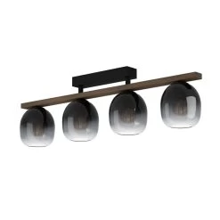 Eglo Filago Four Lamp Linear Ceiling Light With Wooden Crossbar & Glass Shades