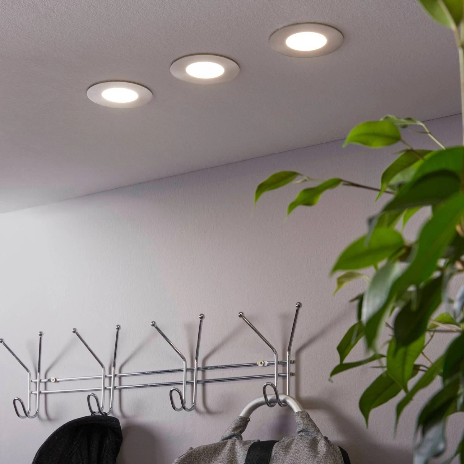 The set of 3 LED spots is equipped with a frame in matt nickel.