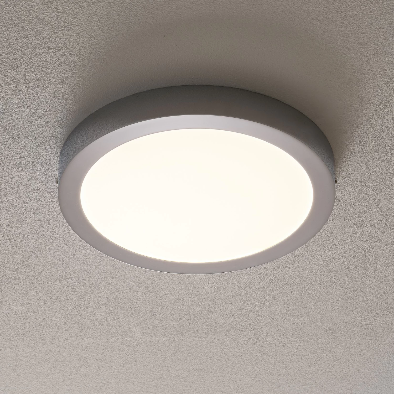 Round LED ceiling light Fueva-C in chrome-coloured jacket, controllable via app
