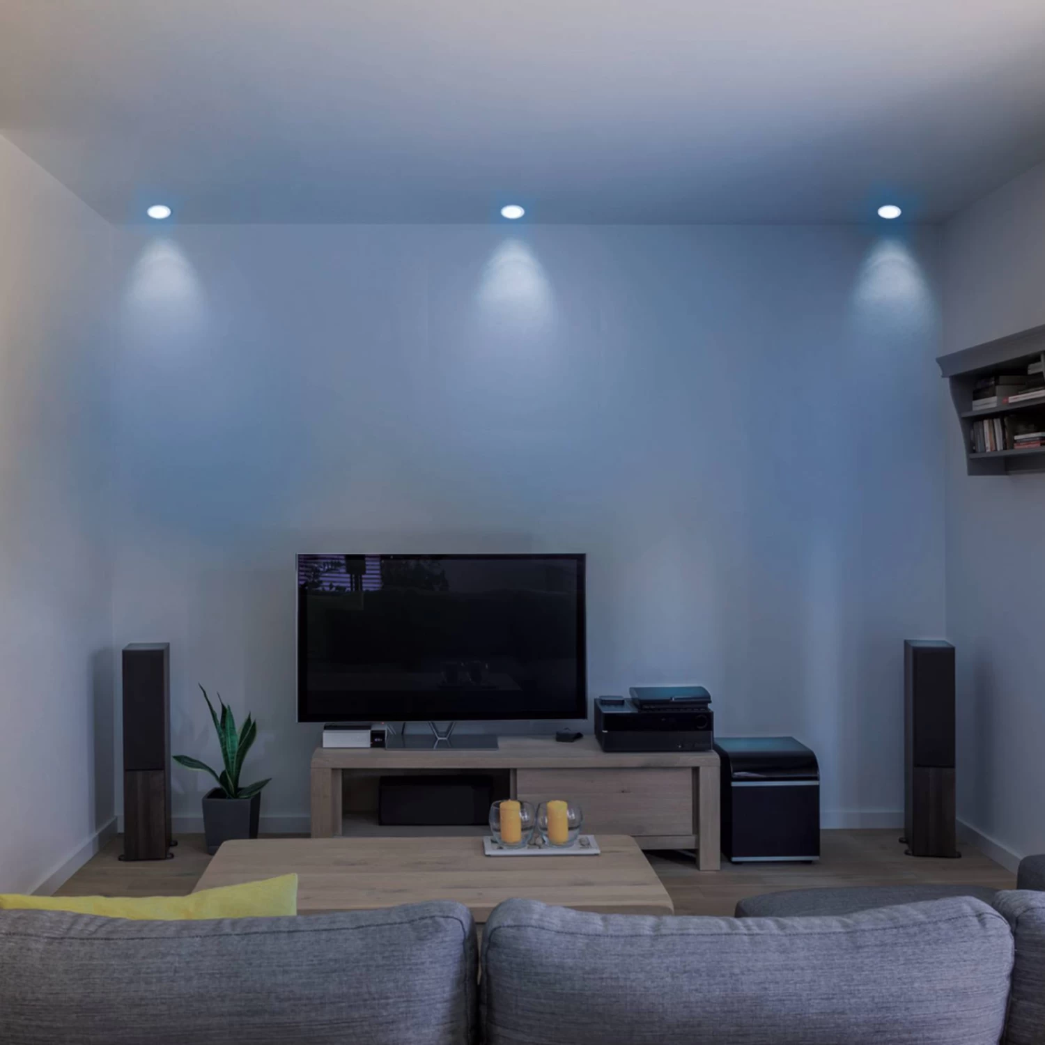 Round LED recessed spotlight Fueva Connect, controllable via appThe white, round LED recessed spotlight Fueva Connect enables room lighting that is absolutely flexible and can be controlled via smartphone or tablet. The spotlight is made of white cast metal with a white plastic diffuser panel and fits into almost any color scheme. Using the free app available for Android and IOS, the lighting can be controlled even while on the go. In addition to white lighting, which can be continuously selected in the range from warm white light with 2,700 K to daylight with 6,500 K, it is possible to choose from 16 million colorful colors. Brightness can be infinitely dimmed in each color, and lighting creations can be created, saved and recalled. Color changes can be selected at different speeds, groups of lights can be formed, and much more. The lighting possibilities are almost limitless. Another form of control is the remote control, which is available as an accessory. It can be ordered directly. Also with the remote control, the various colored and white light colors can be selected, the light can be dimmed continuously, color changes at different speeds can be set and stored light creations can be recalled.