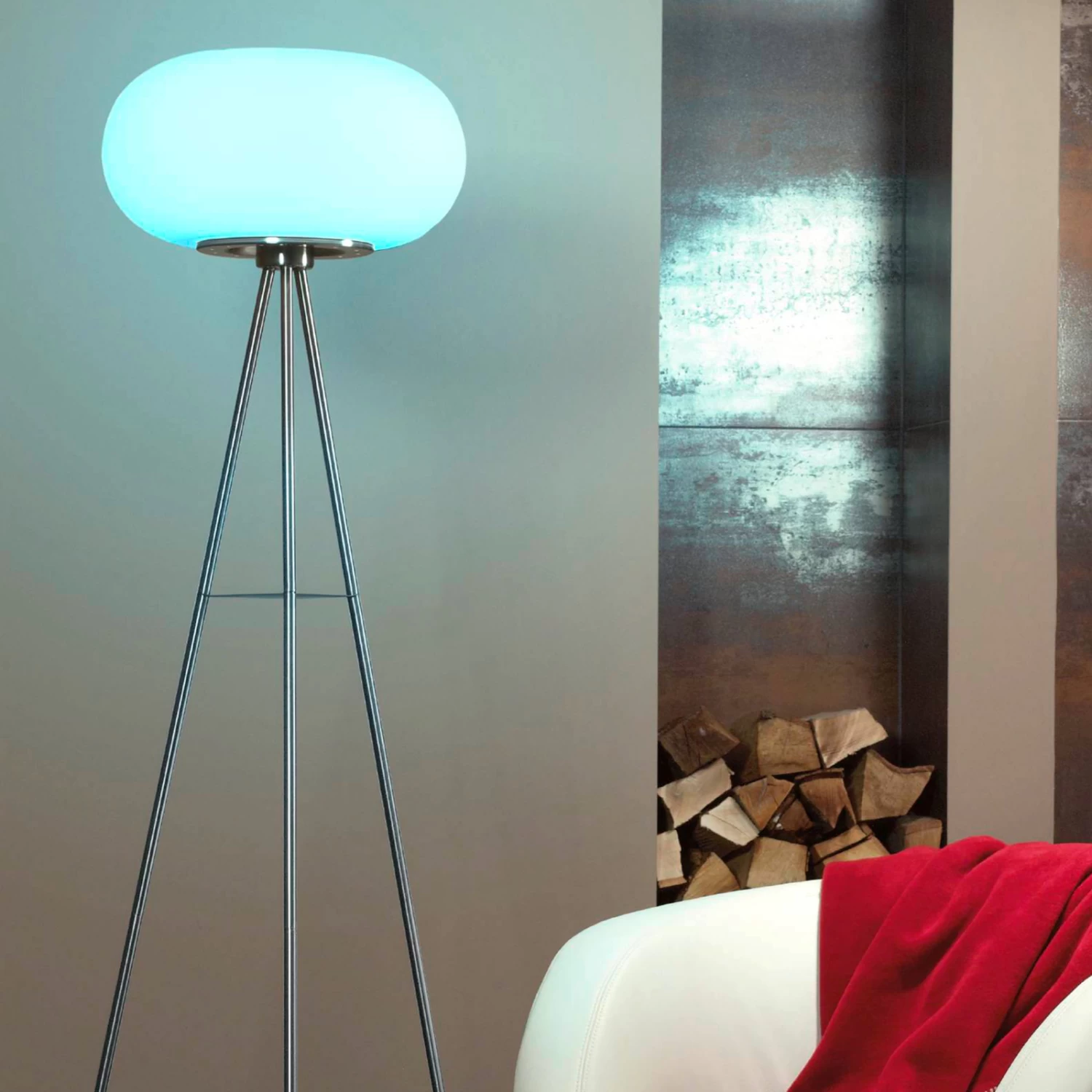 With the LED floor lamp Optica-C, a lighting object moves into the living room, which has a lot to offer not only decoratively, but also functionally. On the matt nickel-plated three-legged frame made of steel is enthroned a lens-shaped shade, which radiates the light through the opal glass gently and evenly in all directions. Via a coupling with the smartphone / tablet via Bluetooth, the light can be adjusted not only in brightness, but also the light color and color temperature via app to create a perfect ambience. In addition to these setting options, numerous other functions are available in the app, such as presence simulation or scene selection.