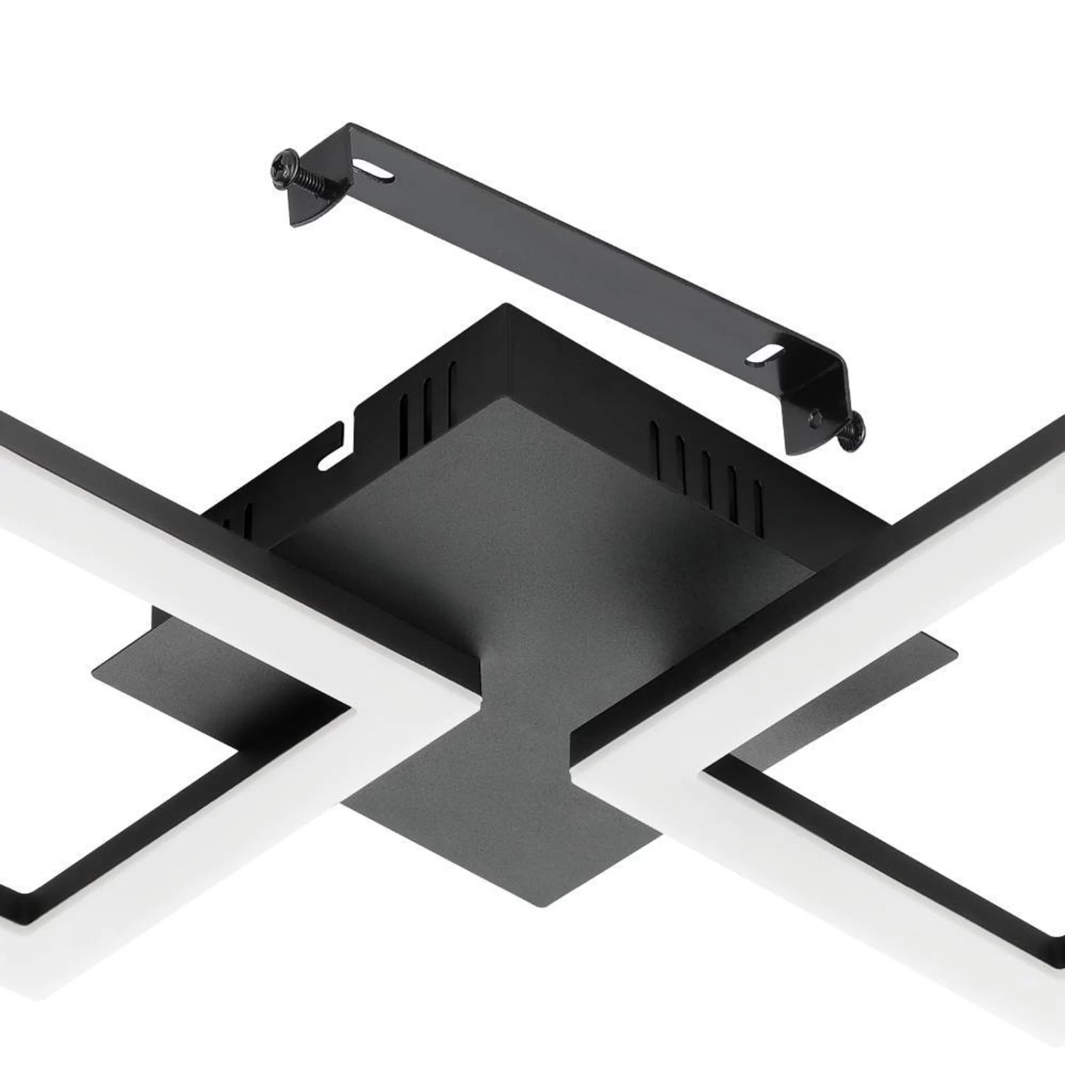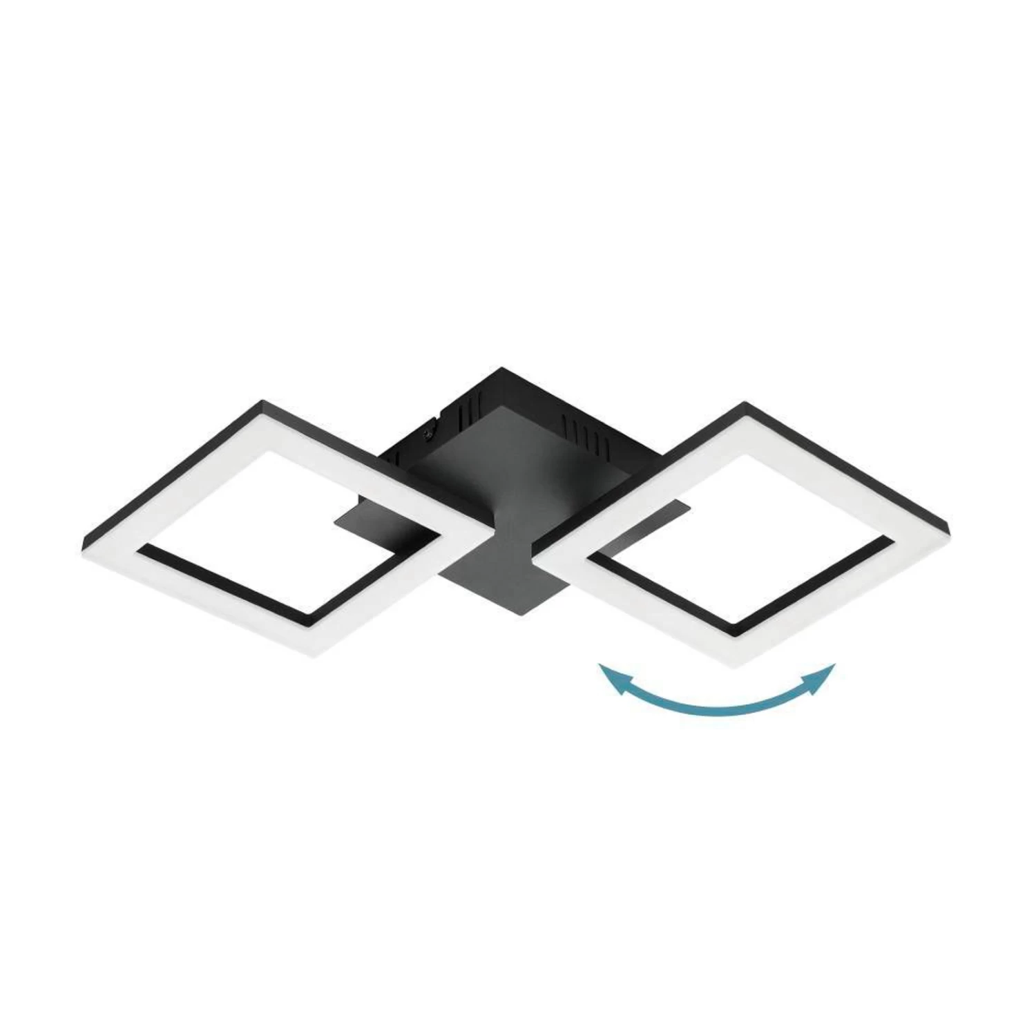 Smart LED ceiling lamp Paranday-Z with two adjustable light elementsMade of steel, the black frame is composed of two squares that form the light sources. Their LEDs sit on the frame under plastic covers and produce a uniform light. The two lighting elements can be adjusted, which allows you to influence the light beam.However, the Paranday-Z LED ceiling light offers numerous other adjustment options, which are available by integrating it into a smart home system based on ZigBee 3.0.Using the free AwoX HomeControl app, you can control the color of the light – you can choose from 50,000 shades of white, which opens up a whole new range of possibilities for the lighting experience. In addition, dimming is possible, as well as integration into groups, scenes or even schedules.Features / Compatibility:- controllable with the free AwoX HomeControl app- compatible with smart home systems from other manufacturers that use ZigBee 3.0- direct connection with Amazon Echo and Google Home possible- increased range through additional Bluetooth Mesh- up to 50 lights or illuminants simultaneously controllable- compatible with all articles of the EGLO connect-c Bluetooth series- controllable with suitable remote control even without Internet access (see accessories)