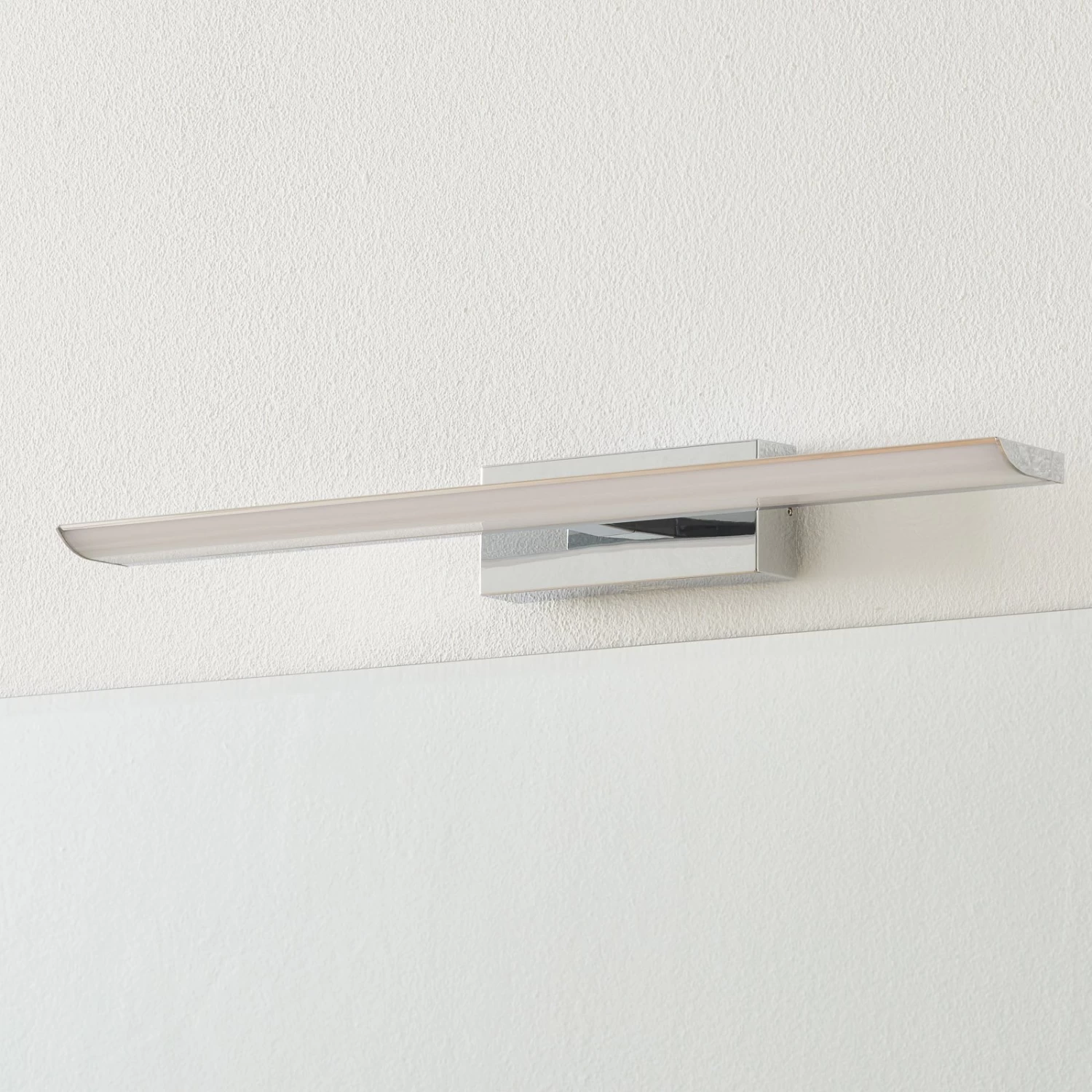 Cantilevered LED mirror lamp Tabiano-C in chrome with wide light emission area