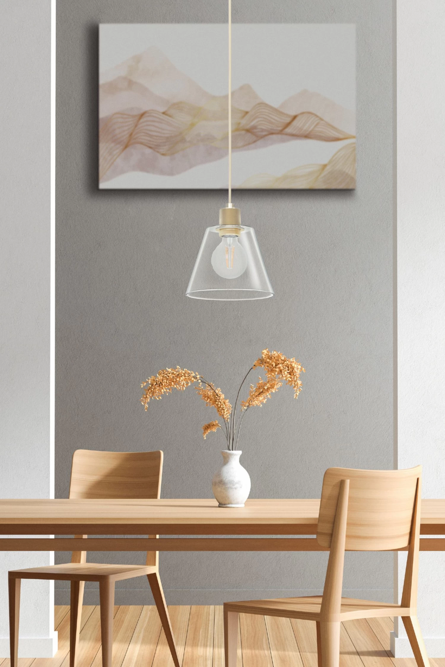 The Copley is a gorgeous retro-style single pendant with a gold-coloured steel finish and clear glass conical shade. The combination of gold and clear glass means the Copley is an attractive and sophisticated lighting choice for your home. This style of pendant looks great alone or hung in lines above your dining room table, kitchen island or breakfast bar. With this touch of gold-coloured steel, the Copley adds a metallic accent to any space. This light is IP20 rated, suitable for interior use only. Standard 2 year warranty.n