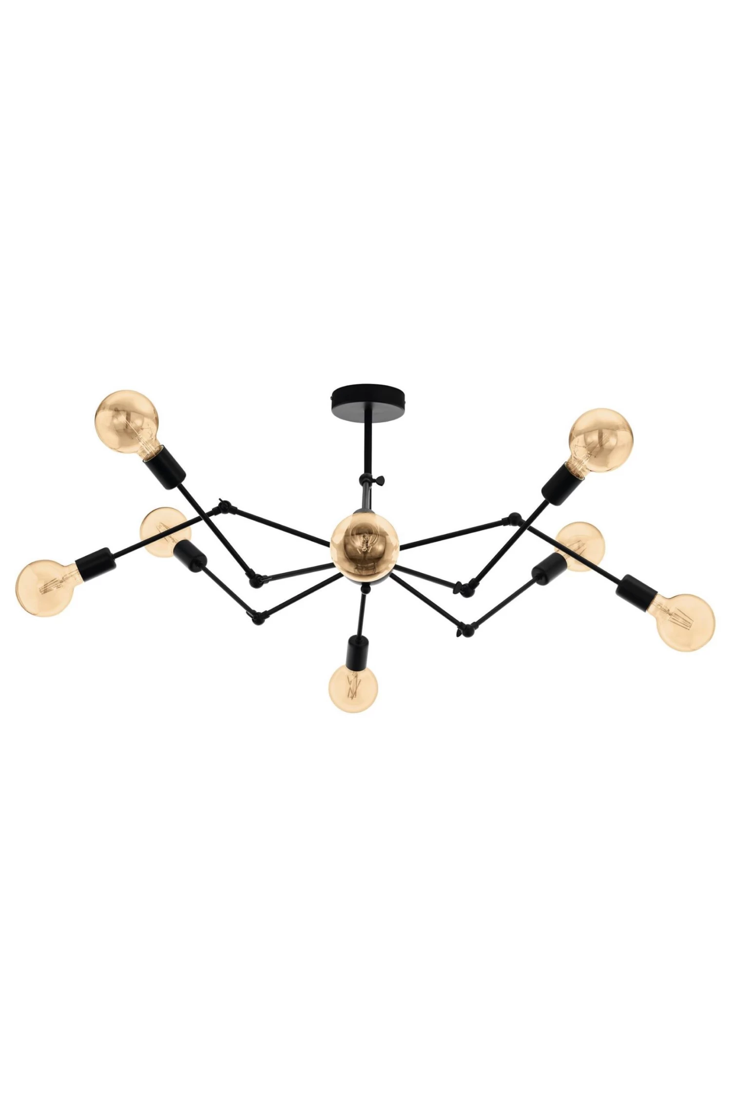The Exmoor is a statement ceiling light with round black steel circular rose. The product has angular arms with lampholders pointing in different directions and exposed lightbulbs. With its sleek black steel finish and modern design, the Exmoor is an eye-catching choice. Couple the Exmoor with large retro-style lightbulbs to enhance the industrial feel of the fitting. This light is IP20 rated, suitable for interior use only. Standard 2 year warranty.