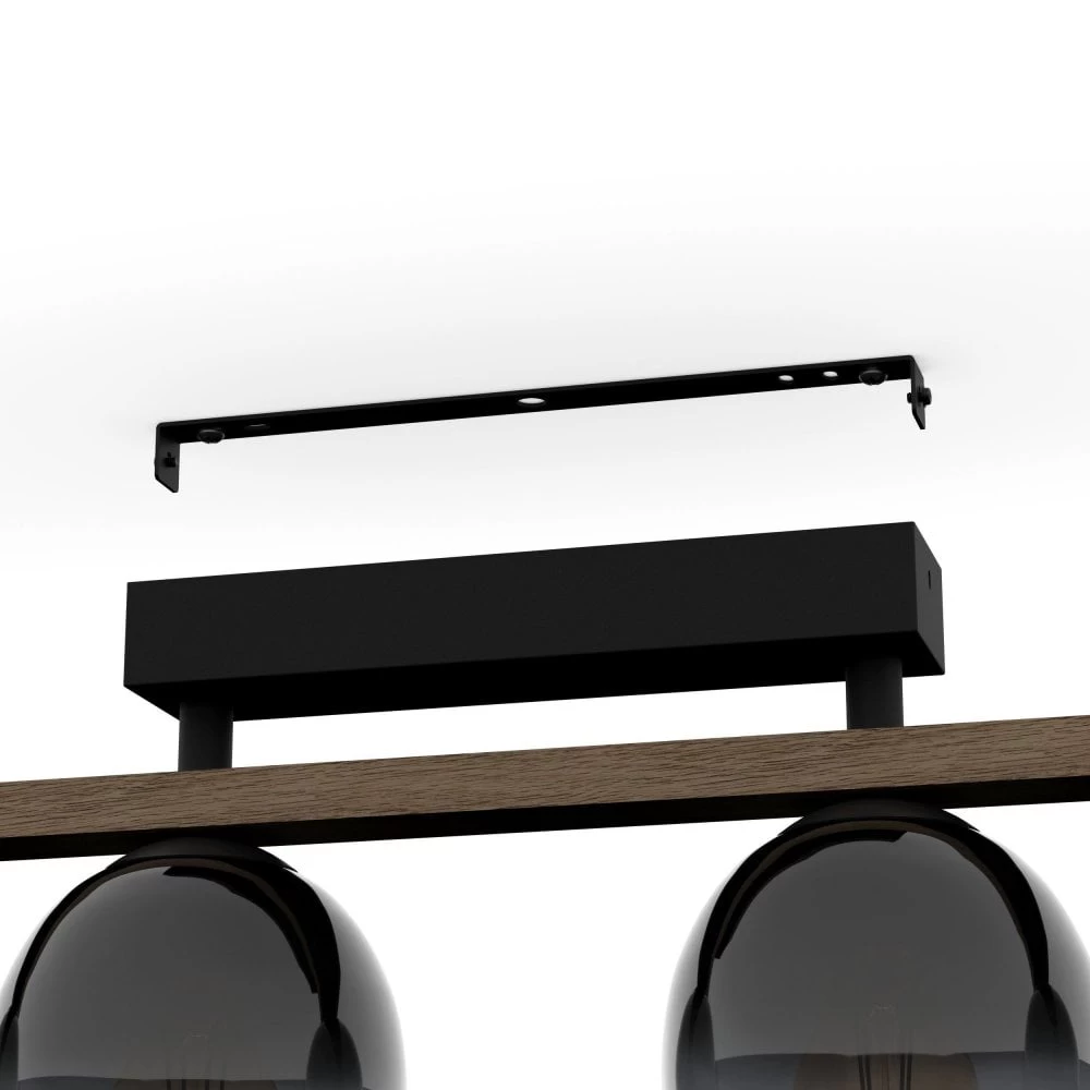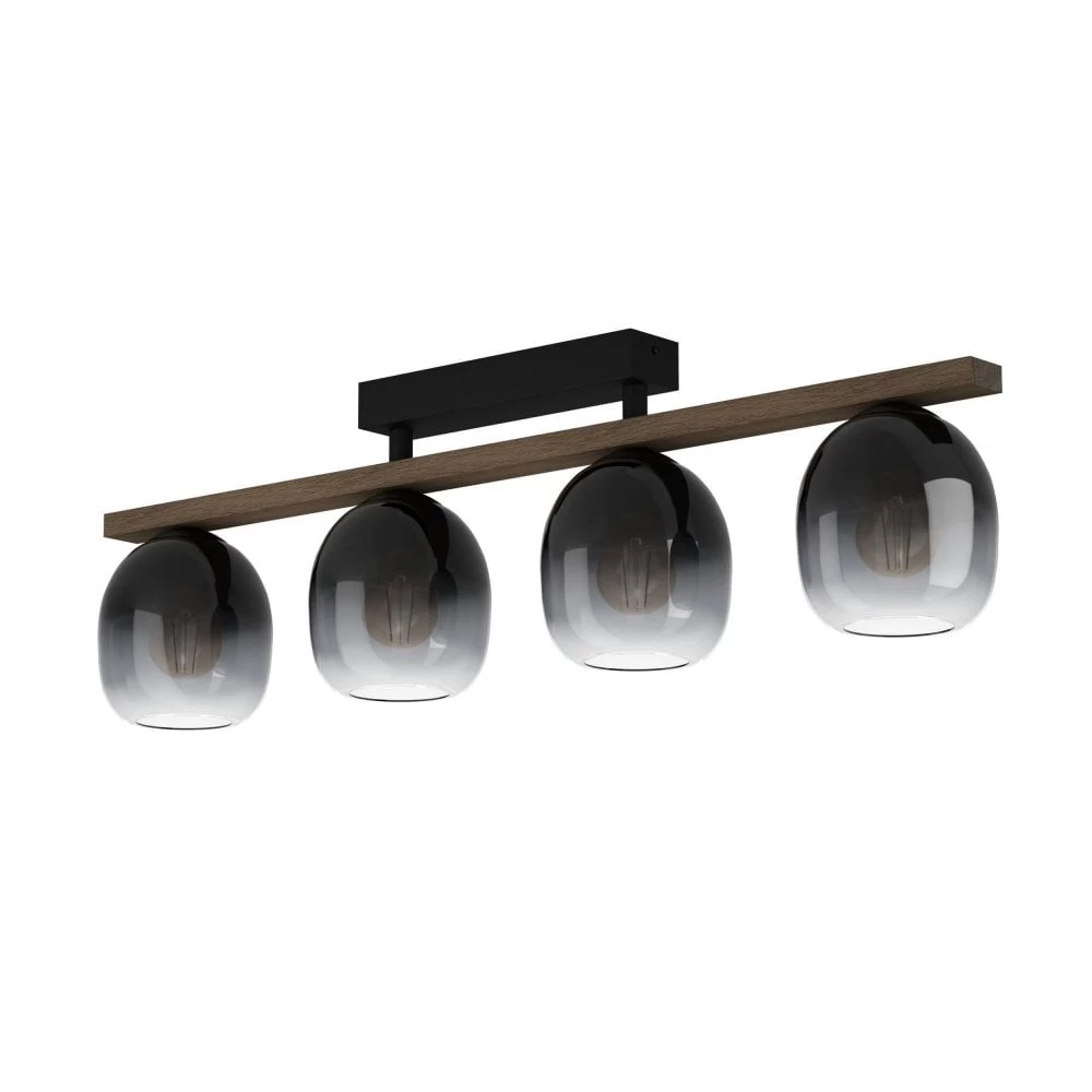 The FILAGO ceiling light features a pinewood beam in walnut brown combined with four round glass lampshades that fade from black to transparent. The black metal base beautifully complements the ceiling light’s elegant look. The product blends seamlessly into modern interiors, providing welcoming lighting in any space, whether in the kitchen, living room, bedroom or hallway