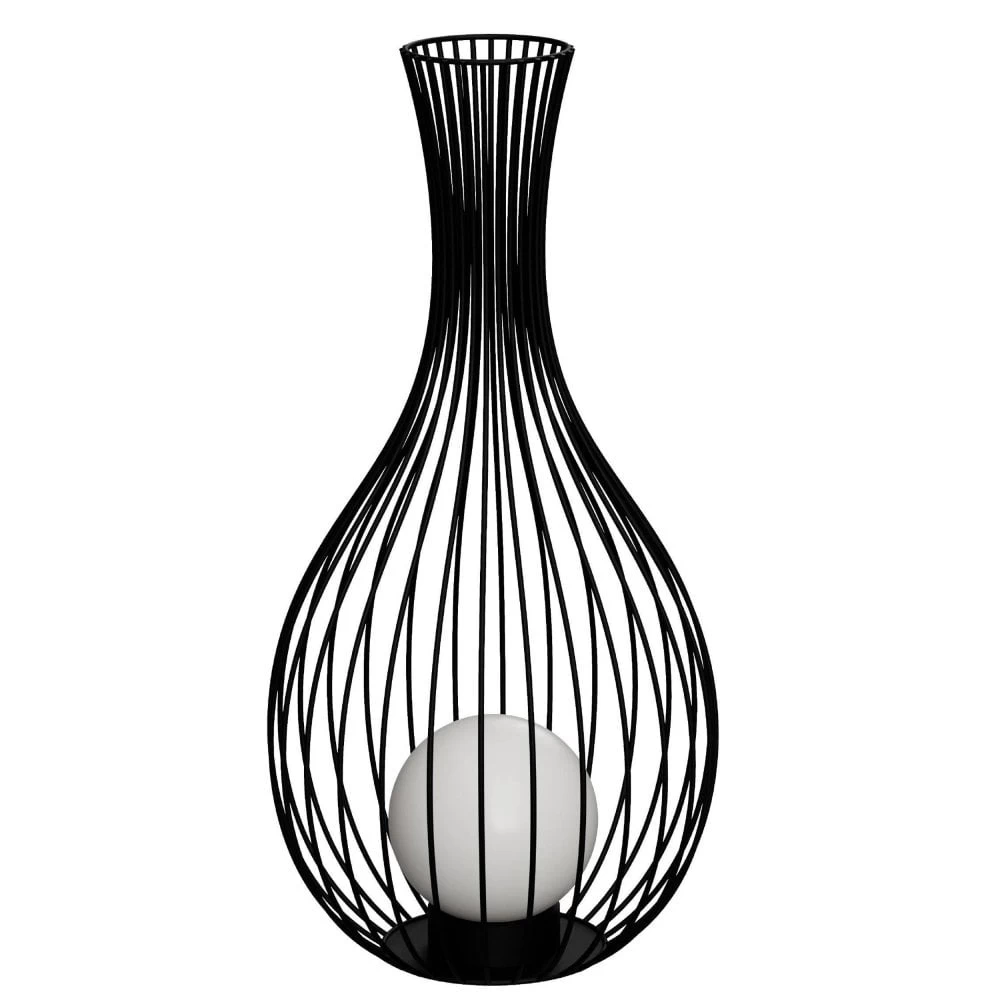 The FOSSOMBRONE exterior post light has a zinc-plated wire body in black, shaped like a vase. Inside the curved body is a white light sphere made of plastic. The light is suitable for outdoor use due to its IP65 protection against dust and low-pressure jets of water. With its distinctive design, the product blends into any modern outdoor space. The light is fitted with a 1.5 m cable with a plug, which allows flexible placement, whether on the terrace or the balcony