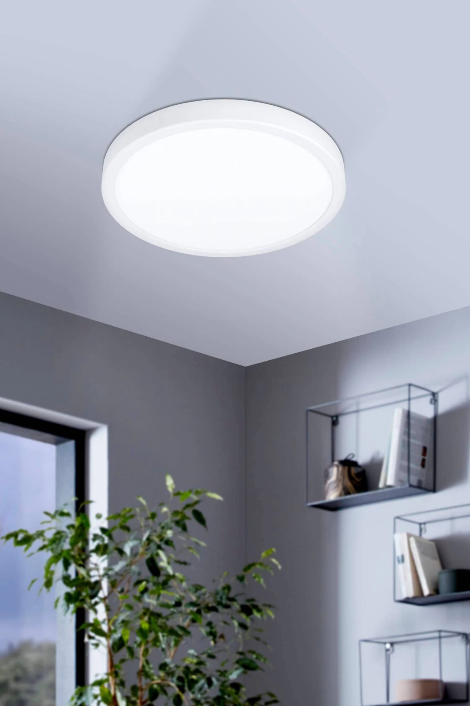 The Fueva 5 is a surface-mounted light with a minimalist design in white steel. The product has a white plastic diffuser and integrated LED components which produce a warm white light when illuminated. The Fueva 5 has an IP44 rating, making it ideal for bathroom lighting due to its protection against water and dust. The Fueva 5 is an ideal choice for illuminating your bathroom or other areas of your home due to its simple yet versatile style, energy-efficient technology and classic white finish. This light is IP44 rated, suitable for interior and bathroom use. 5 year warranty.