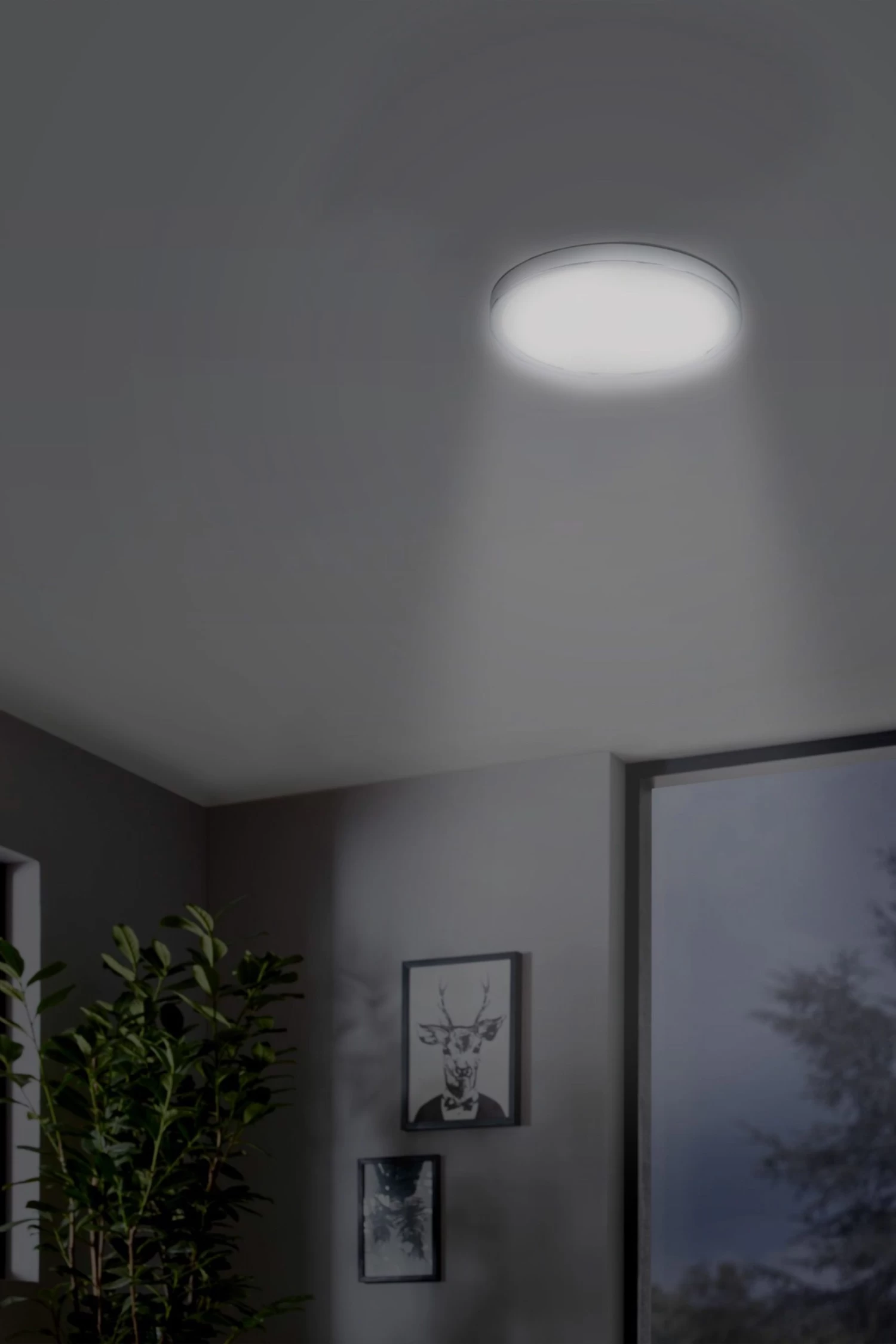 The Fueva 5 is a sleek surface-mounted light with a simple round design and contemporary polished chrome finish. The fitting has a white plastic diffuser which diffuses the light out beautifully when illuminated to create a soft glow of light. The product has integrated LED components that produce a warm white light and promote energy efficiency. The Fueva 5 has an IP44 rating which means it is suitable for bathroom lighting and would be a stylish, modern choice. This light is IP44 rated, suitable for interior and bathroom use. 5 year warranty.
