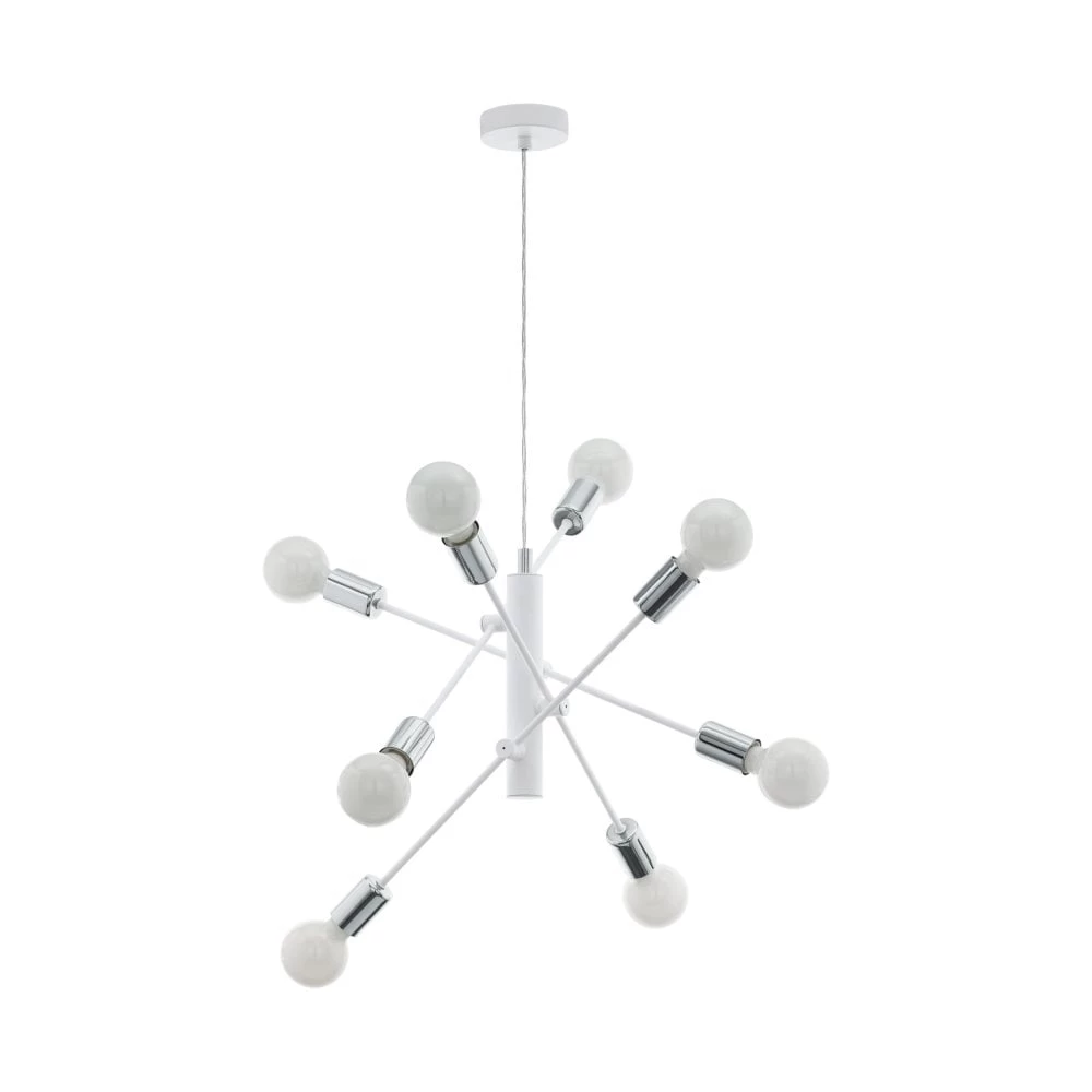 The Gradoli Pendant Light from Eglo Lighting is a stunning sputnik style fitting in a clean white finish. It features chrome detailing, a clear cable and a matching white ceiling rose