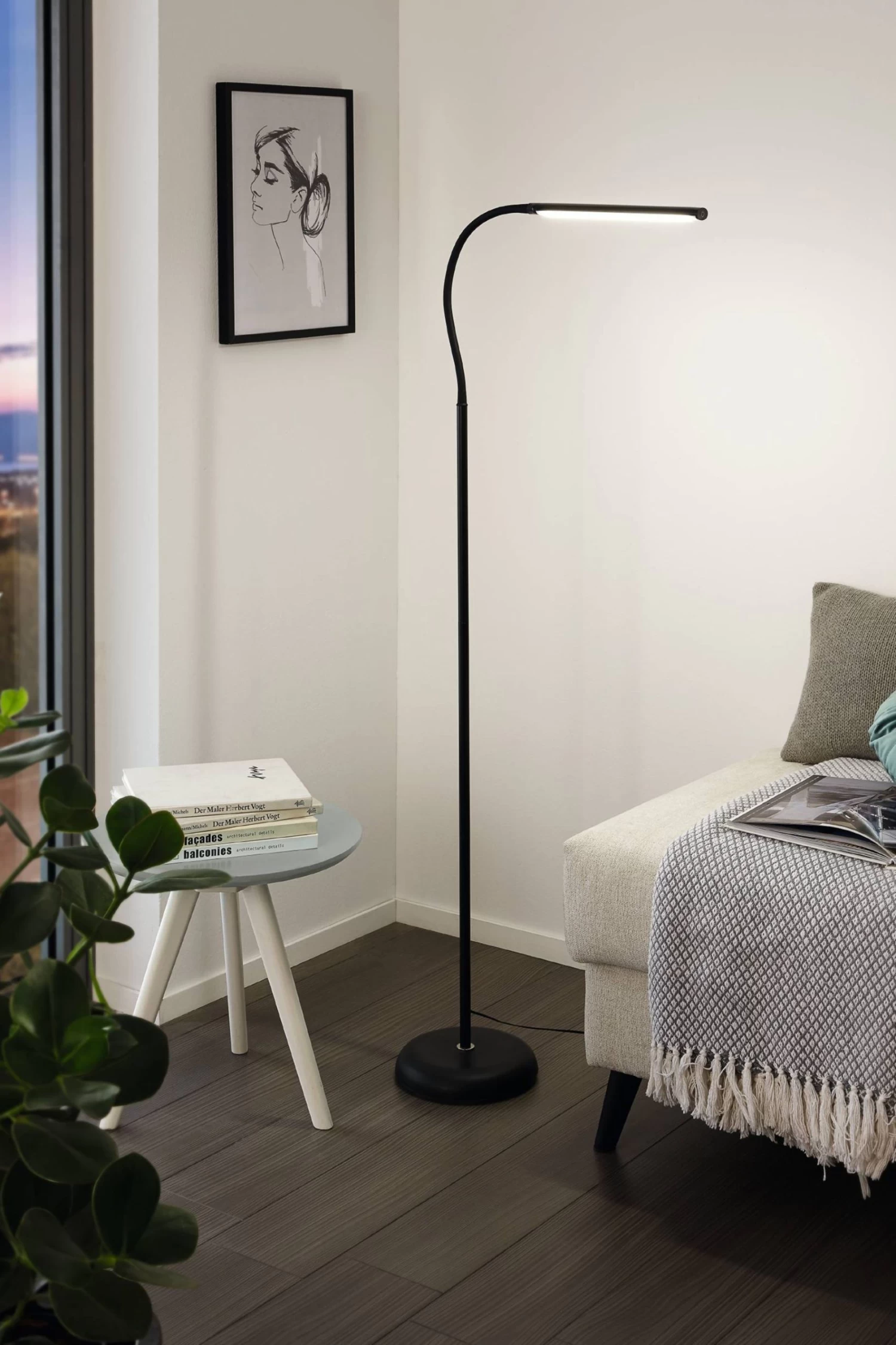 The Laroa is a super sleek floor lamp with a slim design and black plastic finish. The product has integrated LED components with a 4-step dimming function and touch-dimmer capacity. The product produces a neutral white light when illuminated which promotes productivity and is great for a reading nook or office space. This light is IP20 rated, suitable for interior use only. 5 year warranty.