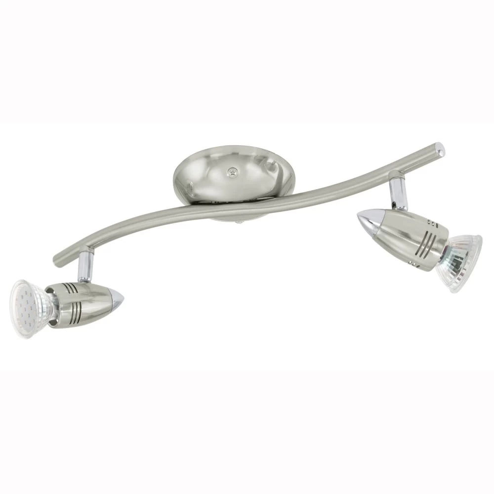 The Magnum double LED spotlight has 2 x GU10 3 watt LEDs in warm white. The Magnum has a satin nickel finish with chrome detailing. The two adjustable spots are mounted on a stylish curved bar