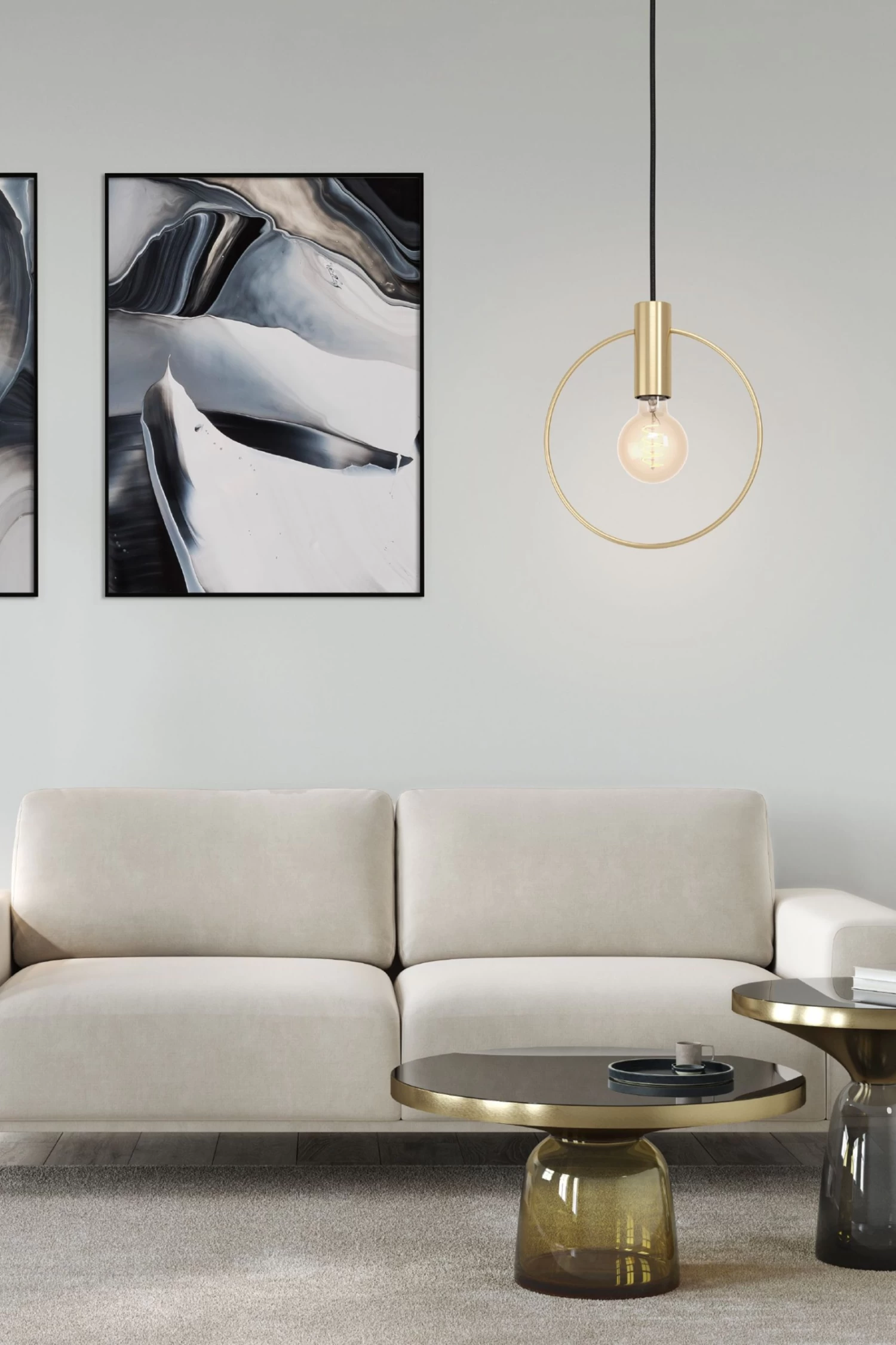 The Manizales is a single pendant that offers simple elegance and Art-Deco style. The product has a brushed brass ceiling rose with a textile cable and exposed lightbulb. The fitting has a circular design surrounding the lampholder in brushed brass, perfect to add a touch of metallic flair. The Art-Deco feel of the fitting comes from the gorgeous brushed brass finish which works well with other metallic accents in an interior. Choose a large retro-style illuminant to add drama to the Manizales. This light is IP20 rated, suitable for interior use only. Standard 2 year warranty.n