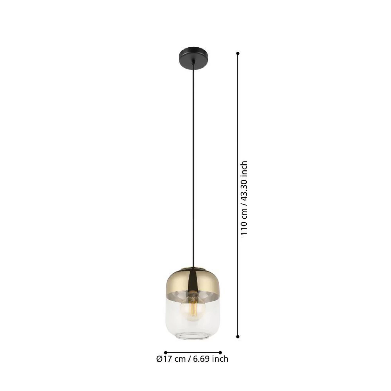 EGLO Maryvilla pendant light, gold/clear, one-bulb