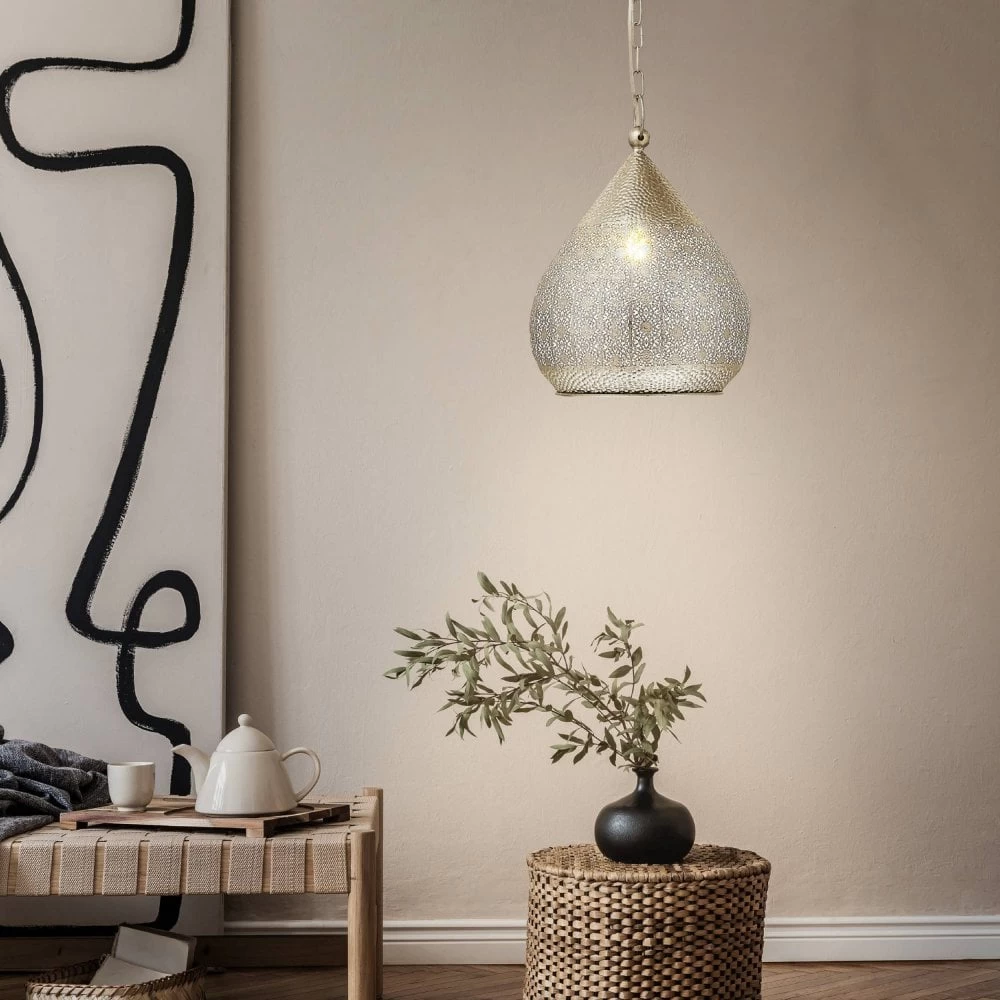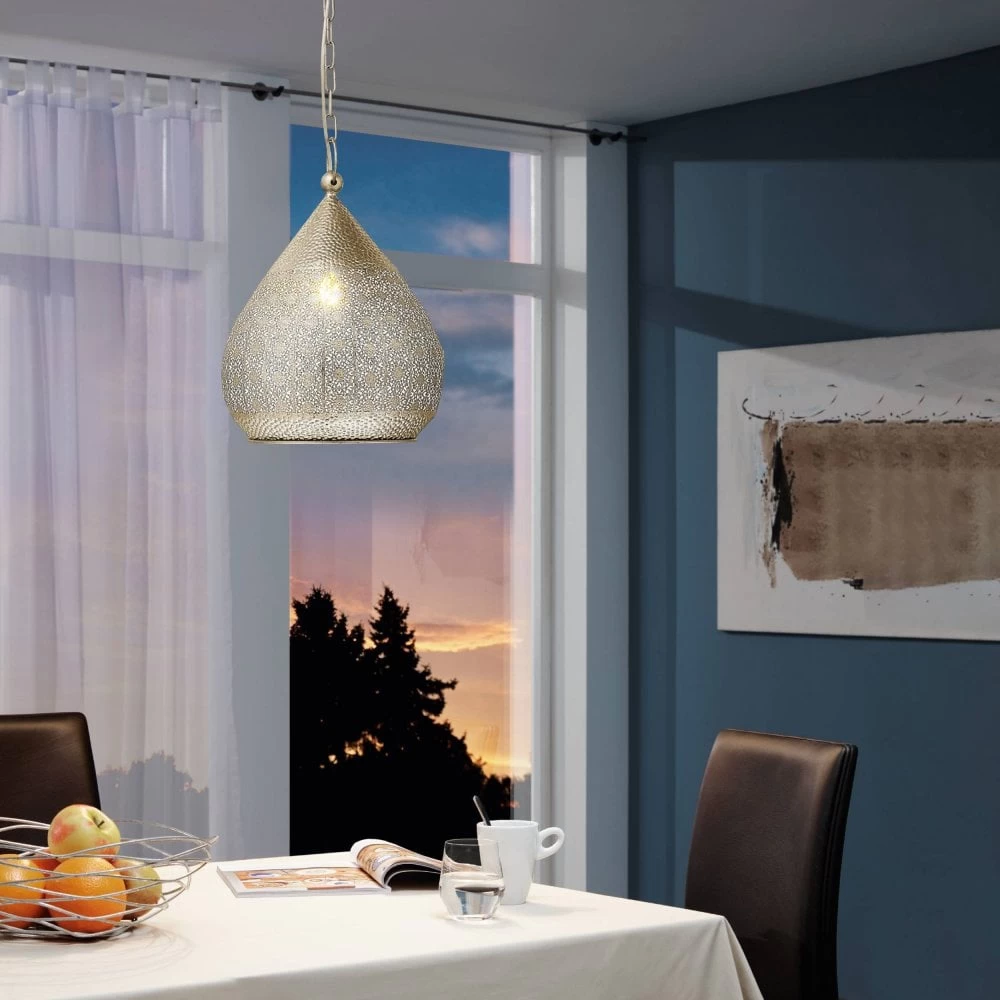 The Eglo Melilla Single Drop Pendant Light from the Vintage Trend collection is finished in an antique gold that remains a classic design. It takes one E27 (ES) lamp max 60w or LED equivalent, and is dimmable for lighting levels to suit any occasion. As a vintage style fitting, the Melilla is versatile enough to complement a range of traditional and contemporary interiors and adds style and interest to almost any room