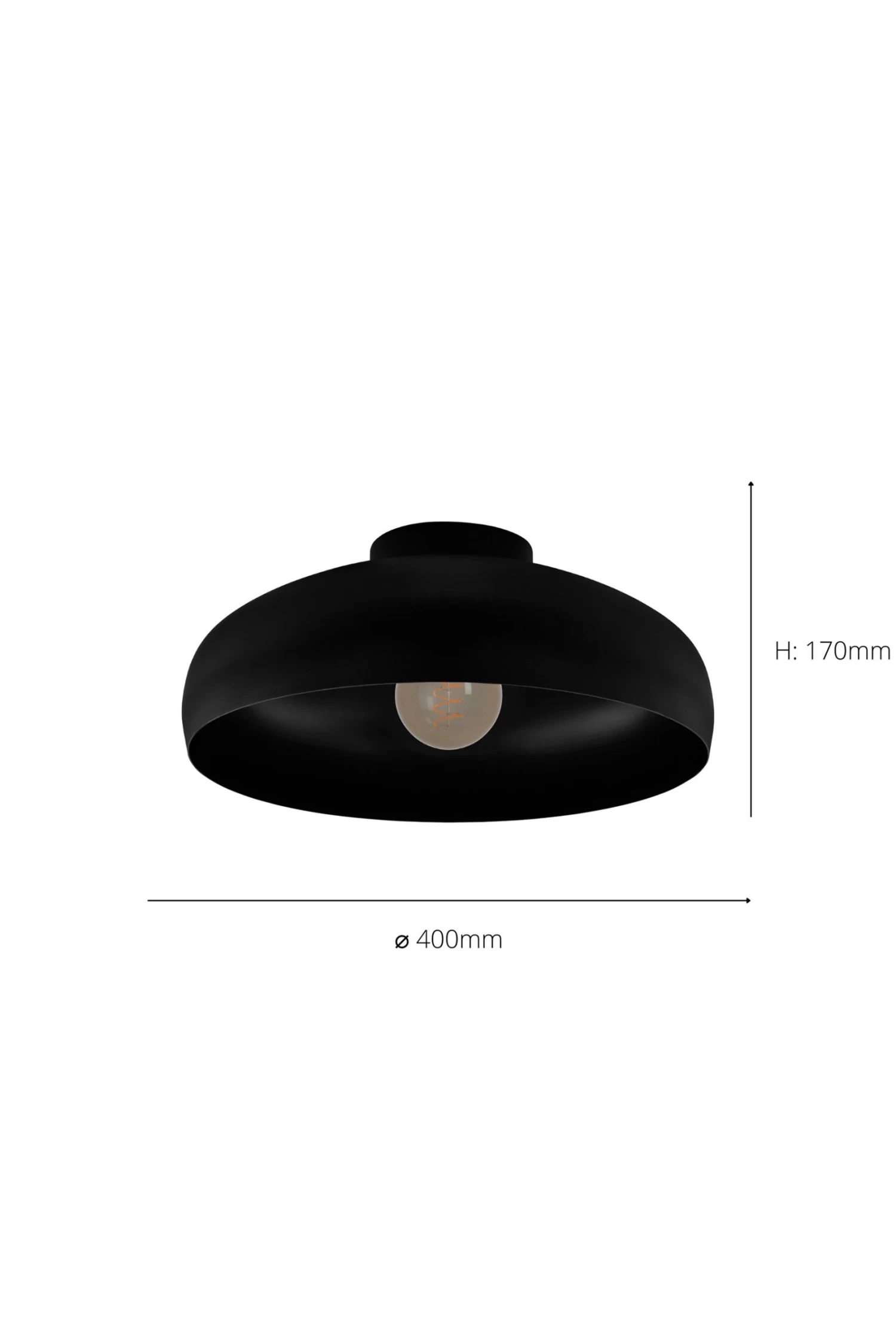 A contemporary look at a trend-setting design, the Mogano is an all-black ceiling light with rounded dome-like shade and an all-black finish. With this choice of all-black steel finish, the Mogano is a versatile and gorgeous choice for interior lighting which would complement a range of interior styles and rooms. The product requires 1 x E27 illuminant and would look good with a large retro-style lightbulb to enhance the vintage style and visible lightbulb style. This light is IP20 rated, suitable for interior use only. Standard 2 year warranty.n