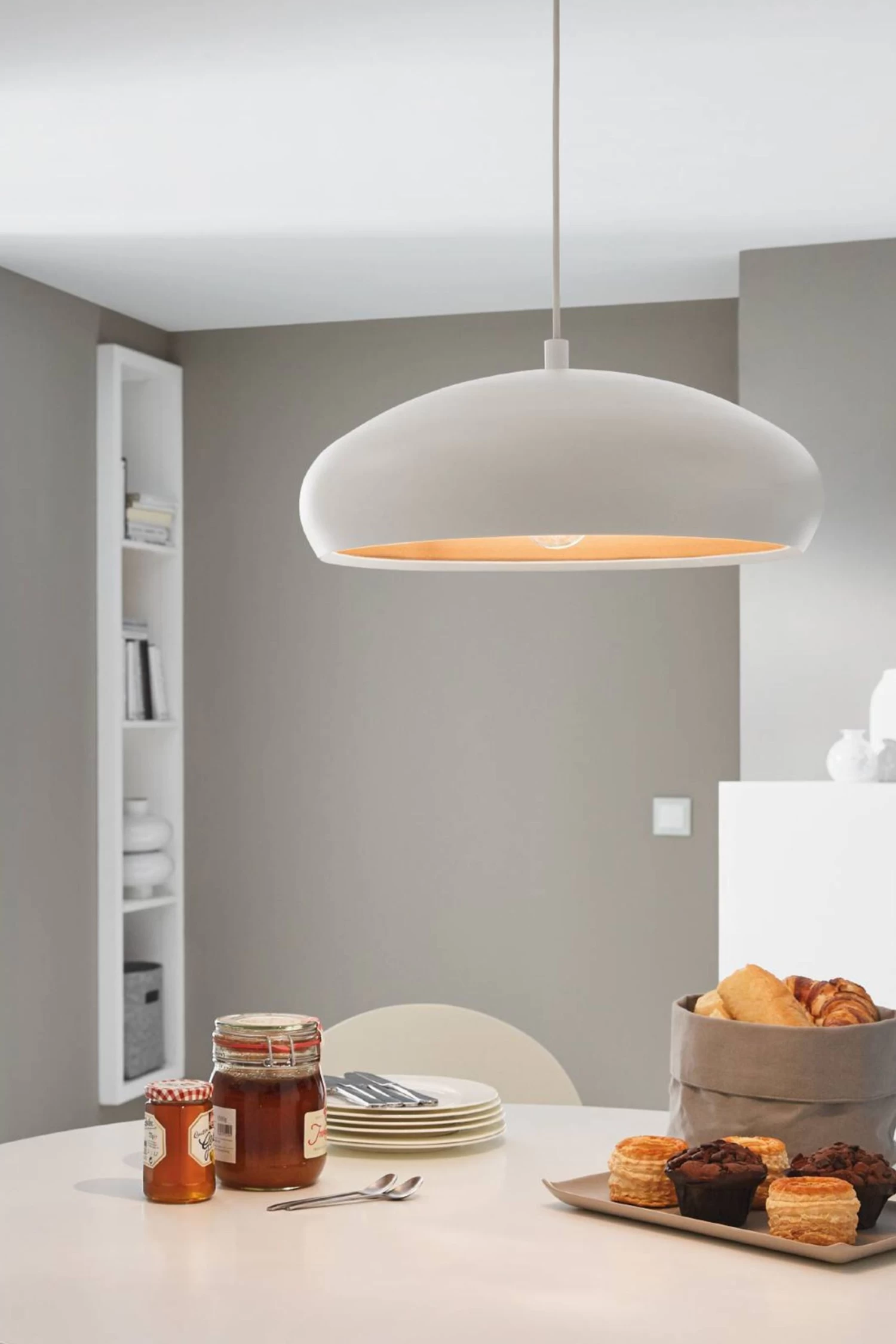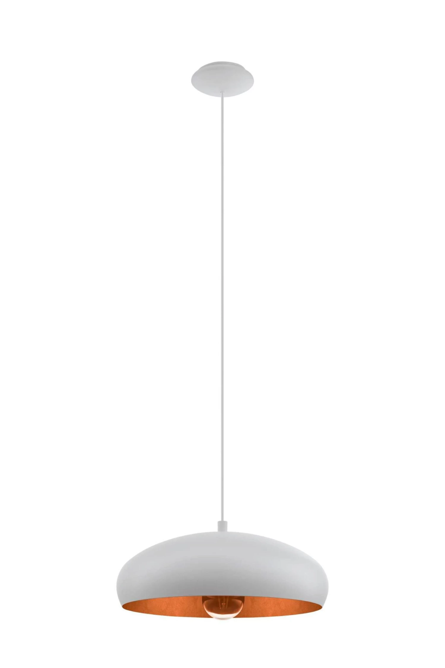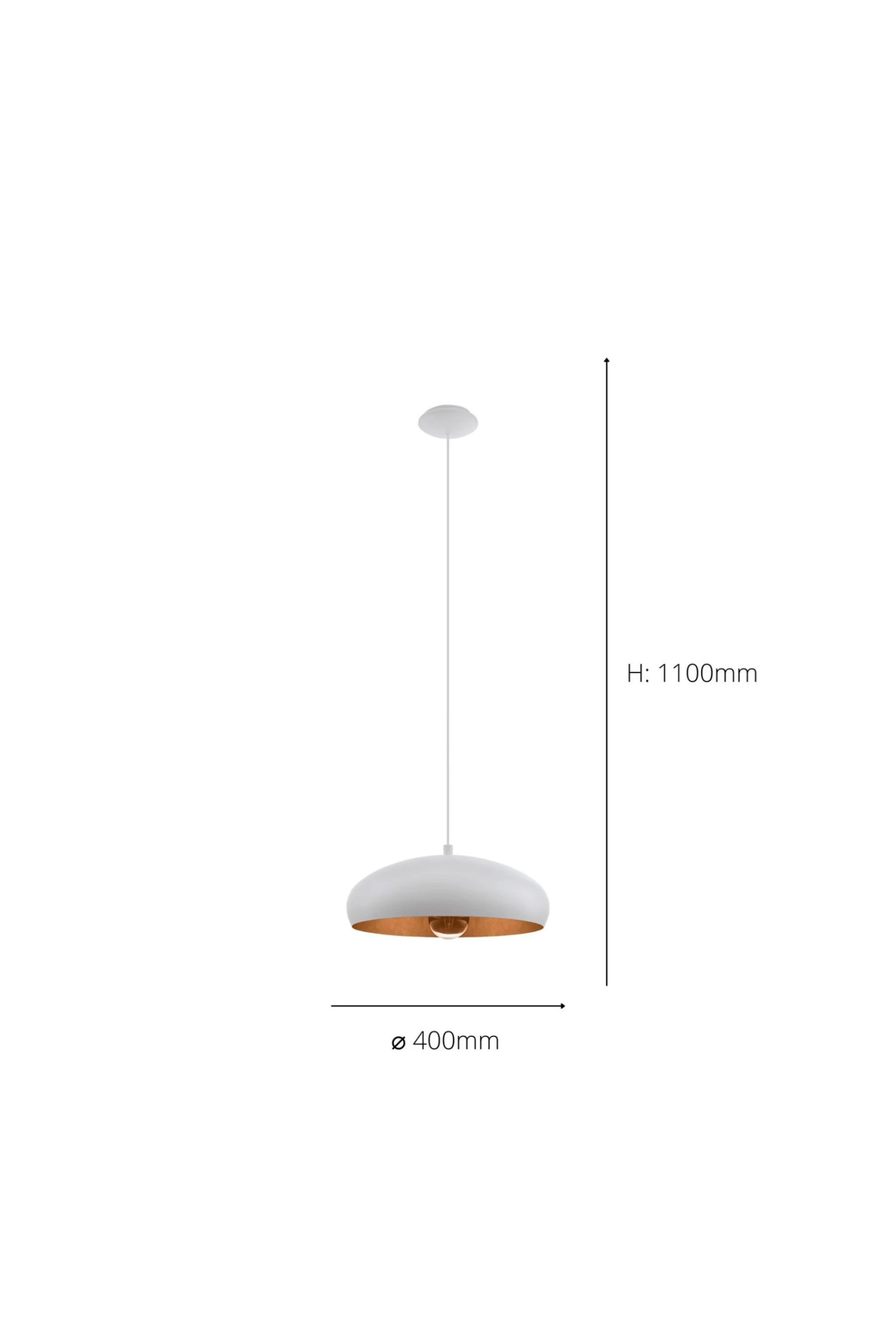 The Mogano 1 is a single pendant fitting with rounded shade and metallic flair. The pendant has a white steel finish with contrasting inner copper shade, which reflects beautifully when illuminated. The Mogano 1 requires 1 x E27 lightbulb. This style of pendant would complement a range of interiors from retro-inspired to contemporary due to its sleek and eye-catching design. This light is IP20 rated, suitable for interior use only. Standard 2 year warranty.