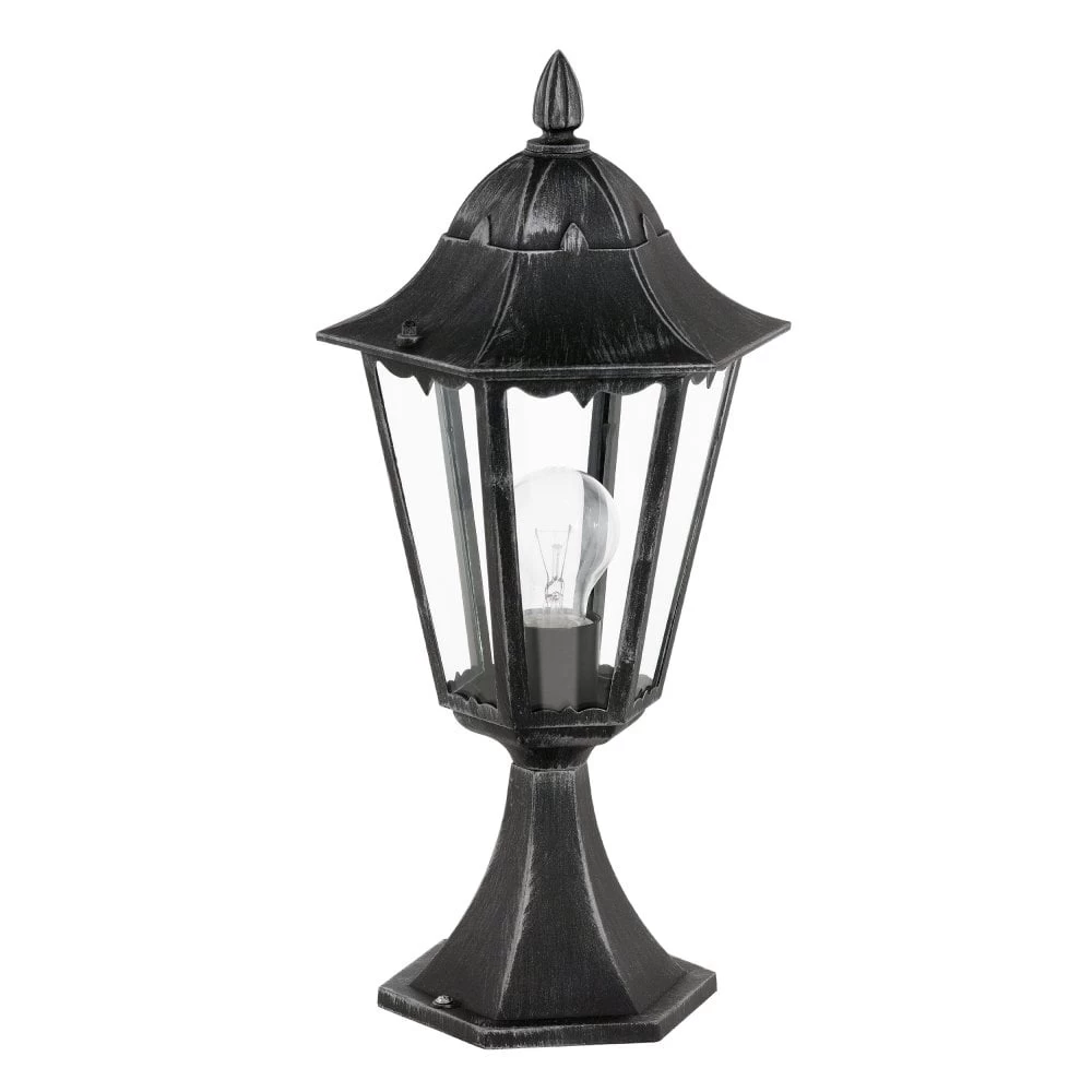 The Eglo Navedo black exterior pedestal light is a traditional looking light completed with clear glass diffusers. Being constructed of cast aluminium, this outdoor wall light is extremely robust, durable and weather proof. This fitting requires a max 60w E27 lamp or LED equivalent. IP44 rated and can be dimmed if a dimmable lamp is used