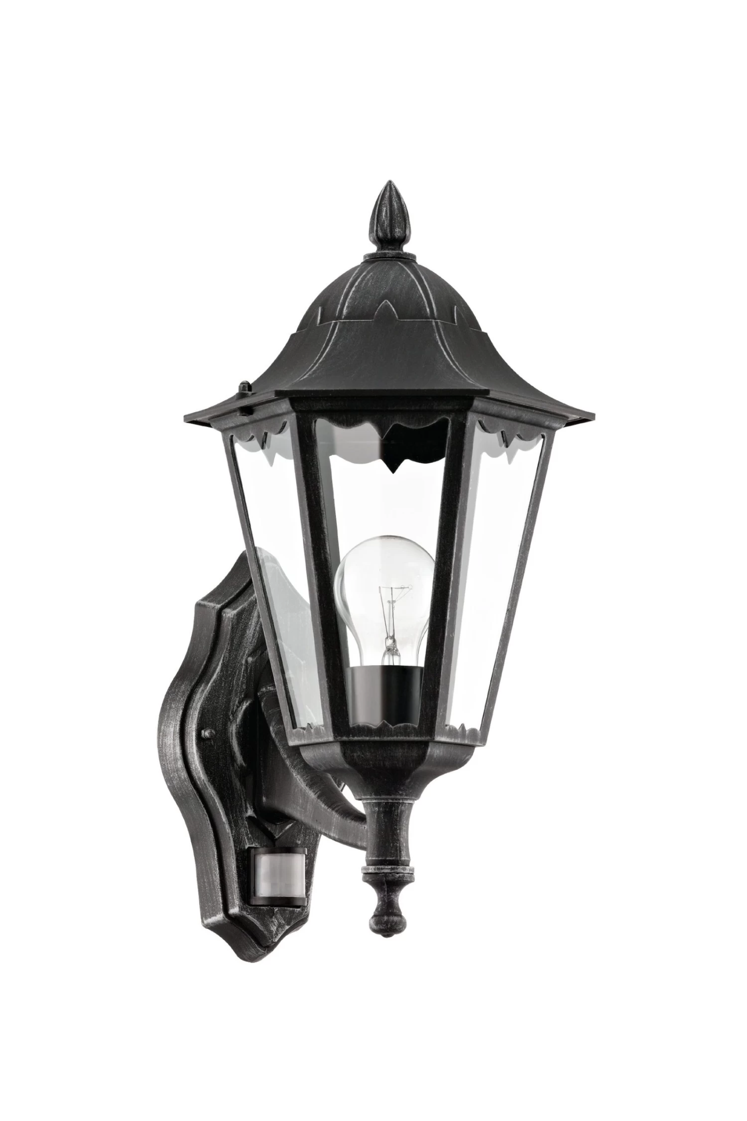 he Navedo is an exterior wall light with a traditional lantern-style design and contemporary black cast aluminium finish with silver-patina accents. The fitting has an ornate finish and caged design with clear glass panes and visible lightbulb style. The fitting has a durable metal finish and IP44 rating, meaning it is perfect for outdoor use. This light is IP44 rated, suitable for exterior use. Standard 2 year warranty.
