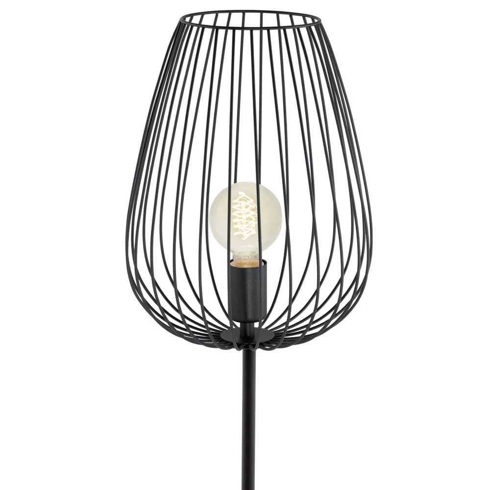 The Eglo Newtown Floor Lamp is a gorgeous statement piece with a modern open wire work frame with a vintage style. The perfect addition to any living space, this lamp is designed to bring light and interest to a dark corner, or a decorative alternative to centre lighting. The open frame design looks particularly striking with a vintage filament lamp which are available to order separately in several different shapes, and takes any E27 (ES) lamp, max 60w or LED equivalent