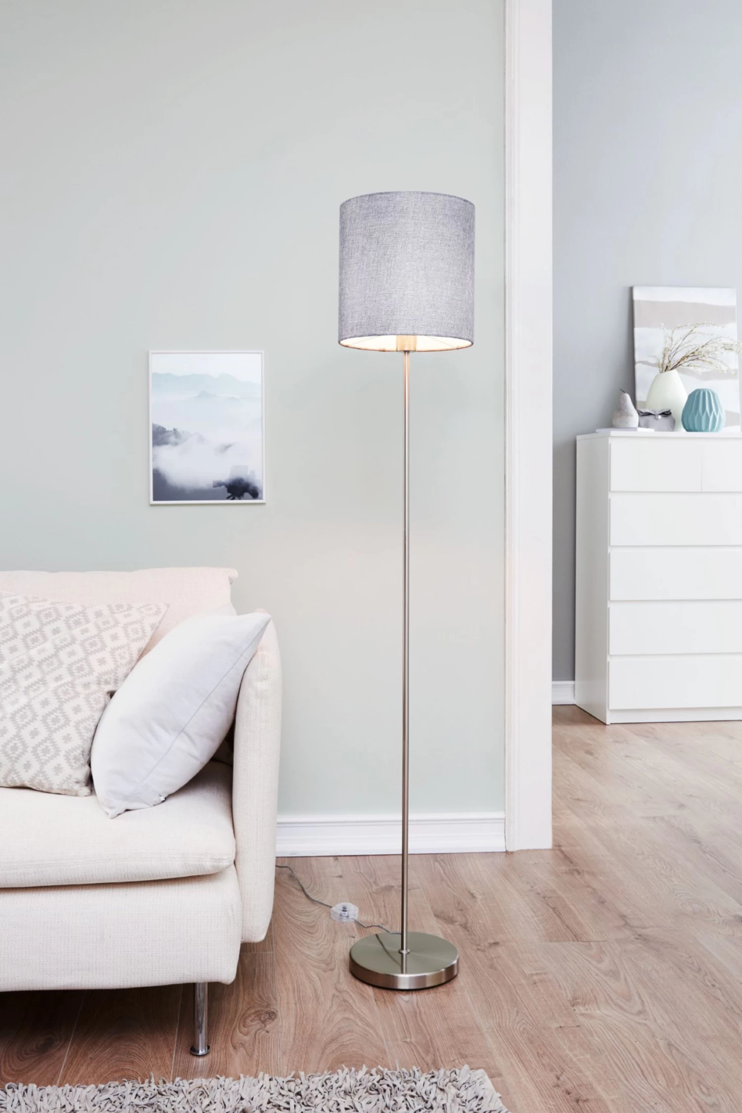 The Pasteri is a slim floor lamp with a satin nickel finish. The floor lamp has a grey linen fabric shade and requires 1 x E27 lightbulb. Although simple in design, the Pasteri offers versatility with its textile shade and neutral colouring, meaning it would be a great way to add illumination to your interior. This light is IP20 rated, suitable for interior use only. Standard 2 year warranty.n