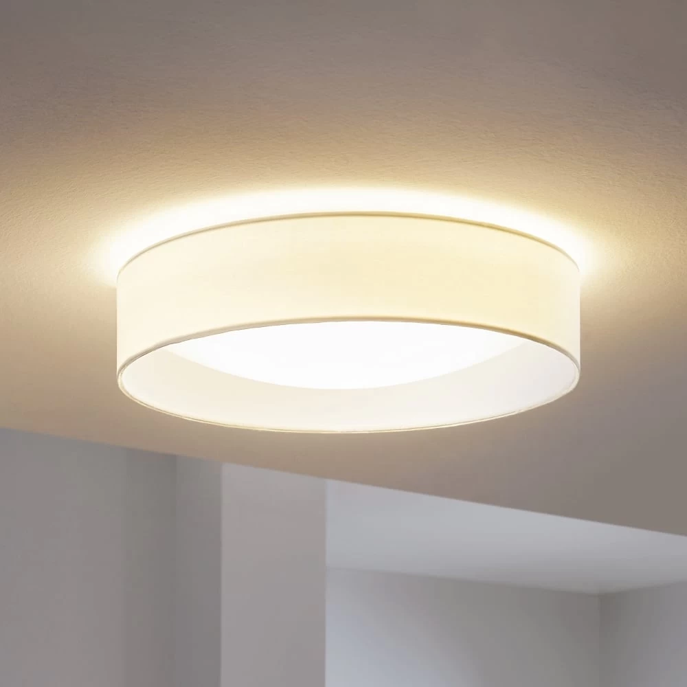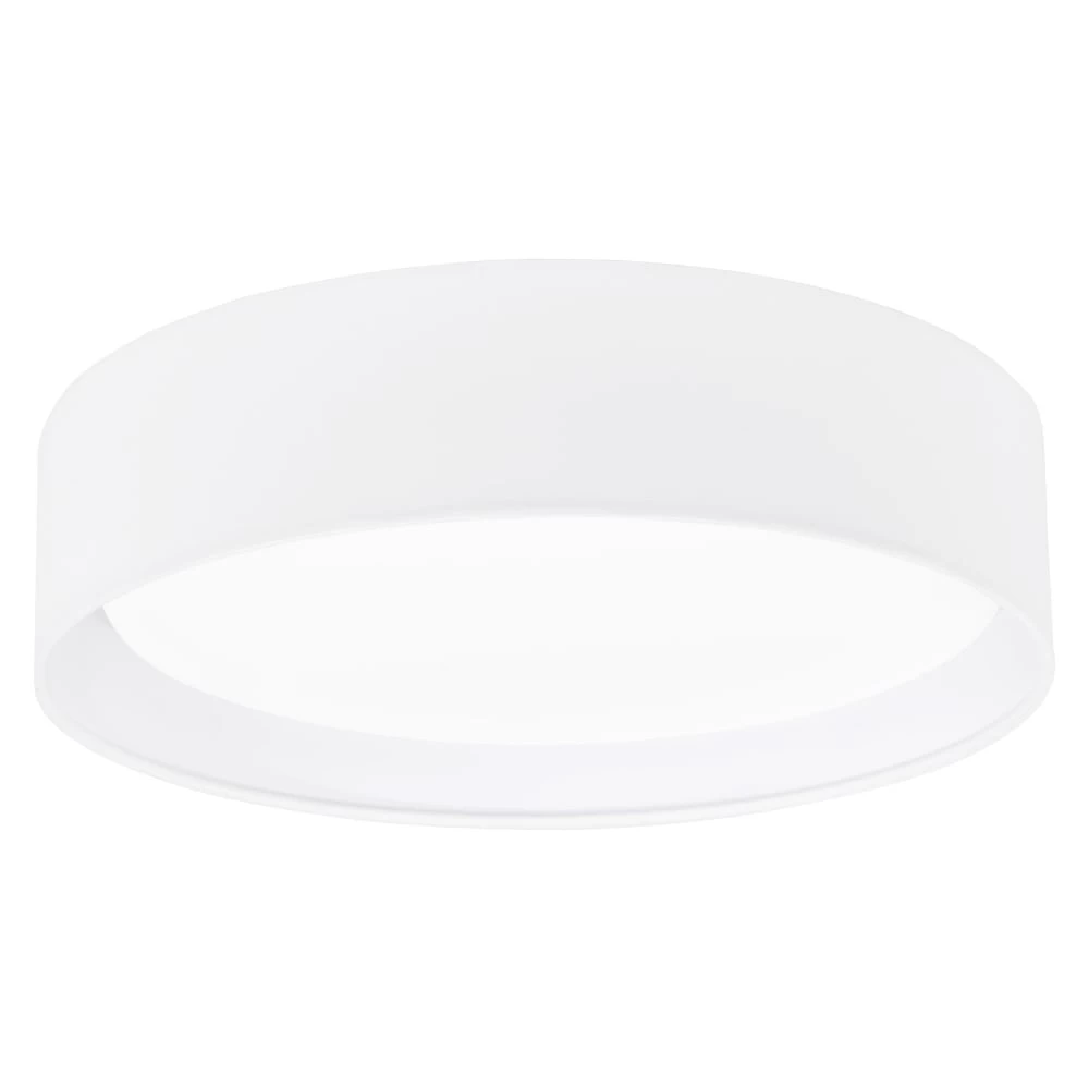 This Eglo LED white Pasteri ceiling light is a simplistic and modern fitting constructed with a white matt outer fabric with an inner white finish. Integrated with a 12w warm white LED producing 1020 lumens, non dimmable. Perfect fitting for low ceilings in a lounge or bedroom