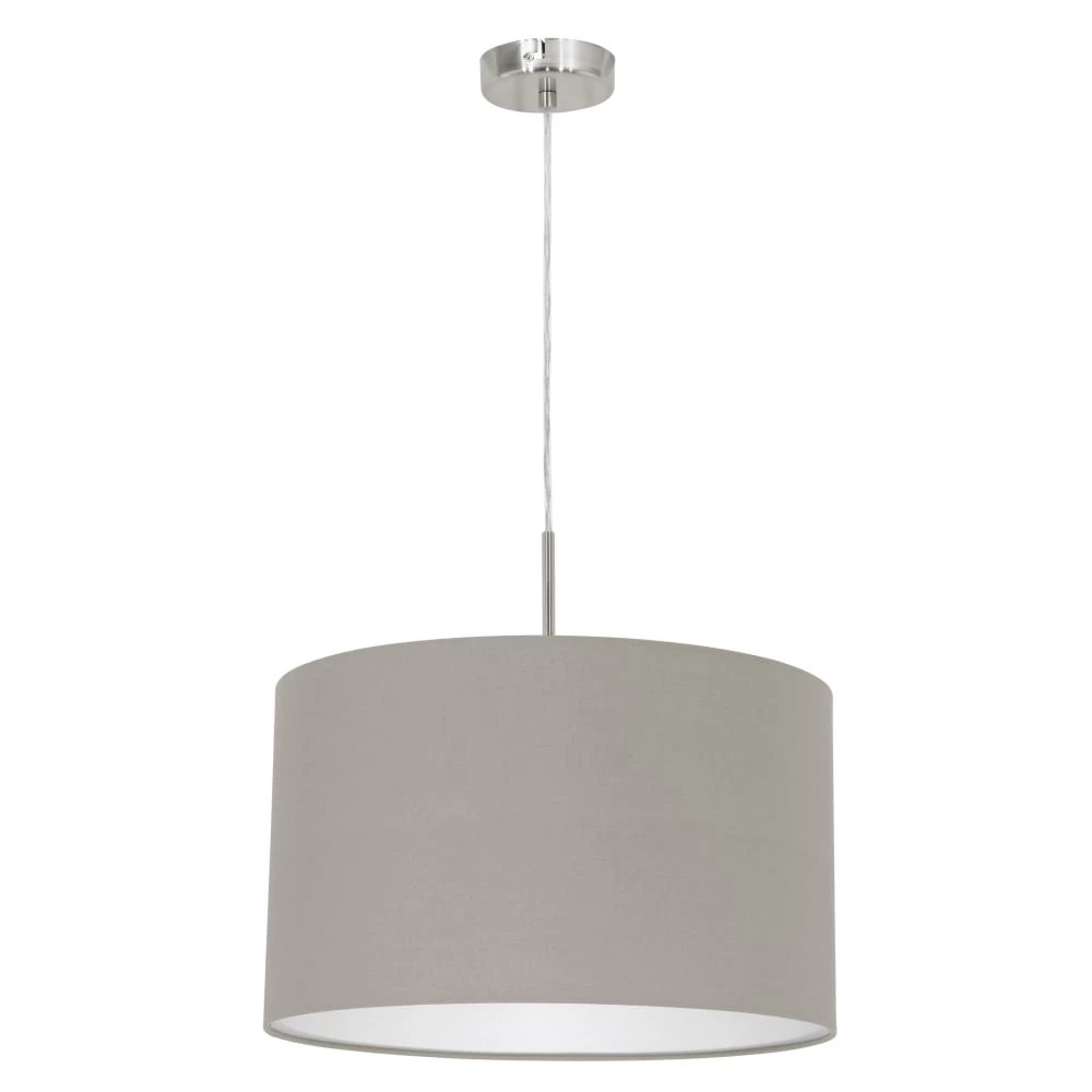 This Eglo Pasteri taupe small round pendant light is simple yet modern. It is constructed with a taupe matt outer fabric with an inner white finish. The height of this fitting can be adjusted on installation to your desired level and requires a max 60w E27 halogen lamp or LED equivalent which can also be dimmed