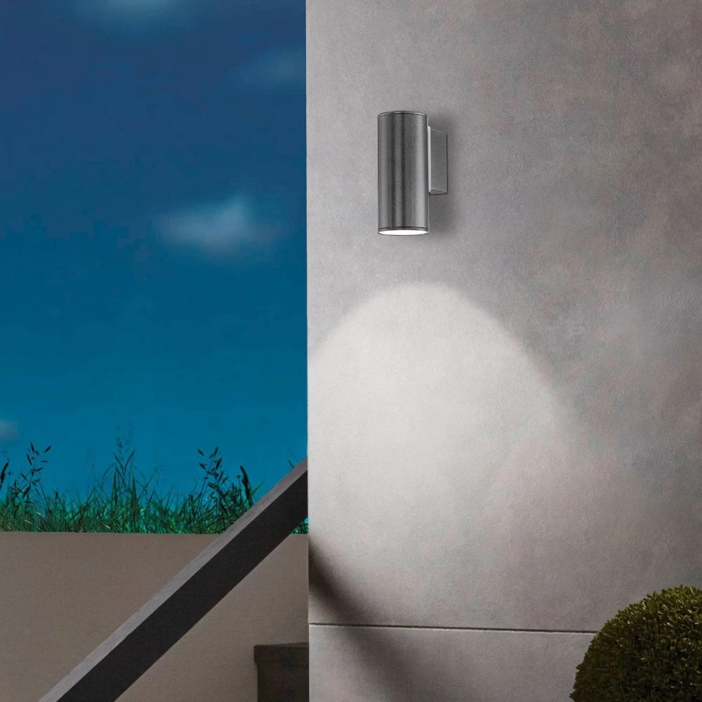 The Eglo Riga Exterior Down Wall Light is a Modern Fitting finished Galvanized Steel and Anthracite. This Light Fitting is IP44 Rated and is perfect for a variety of outdoor settings. 200 lumens and 3000 kelvins allowing this fitting to produce a lovely warm white. This fitting can also be dimmed if dimmable GU10 are fitted