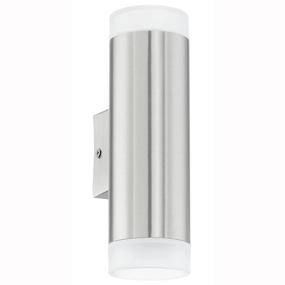 The Eglo Riga LED exterior up and down wall light is a contemporary looking light. Finished in stainless steel with two satinated plastic diffusers where the light is emitted from the top and bottom. Fitted with 2 x non-dimmable 3w GU10 LEDs, but if you wish to dim this fitting, you can use dimmable GU10s. With the lamps provided, there’s a 15,000 hours expected life. IP44 rated and class 1, earthed
