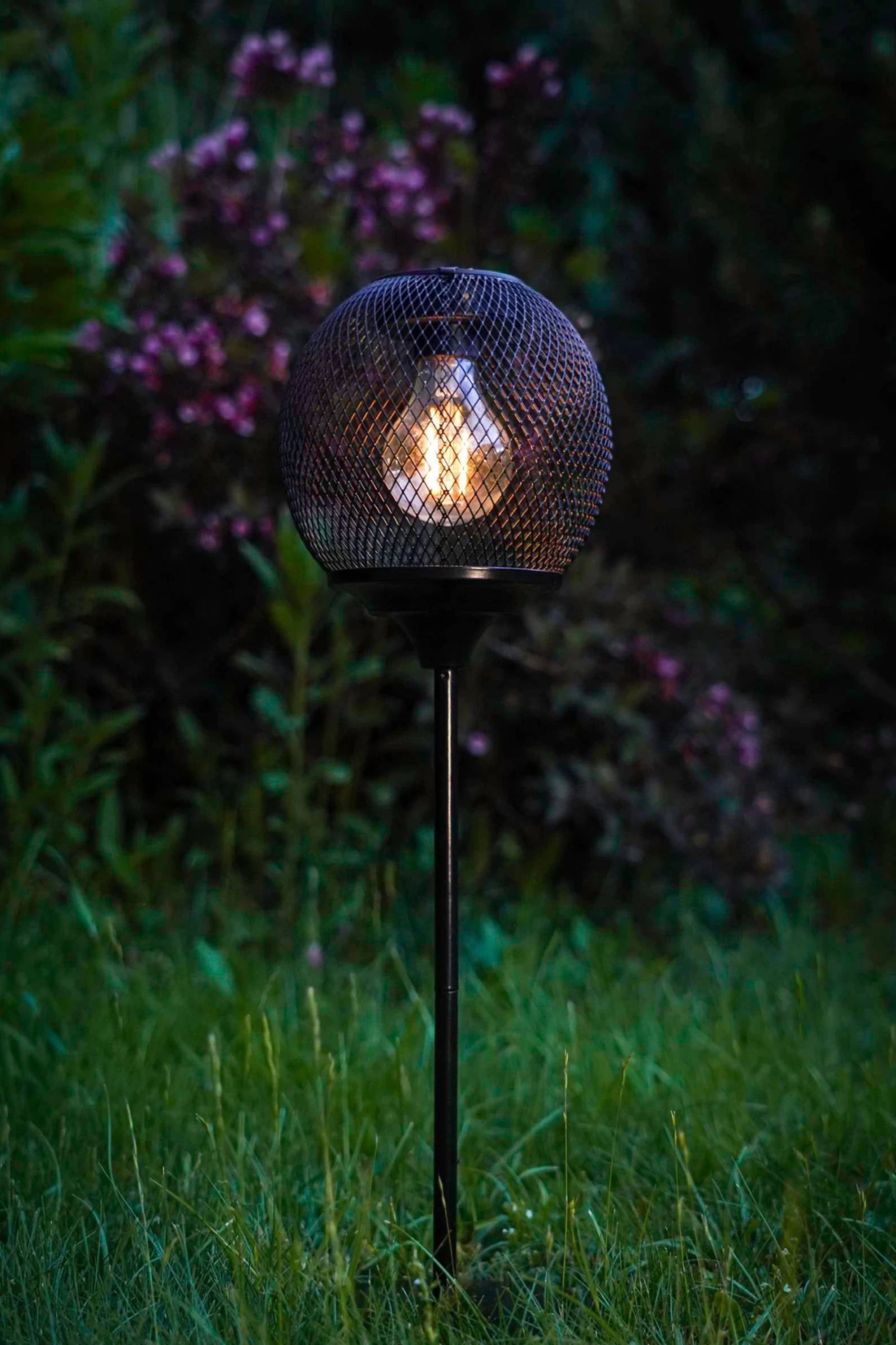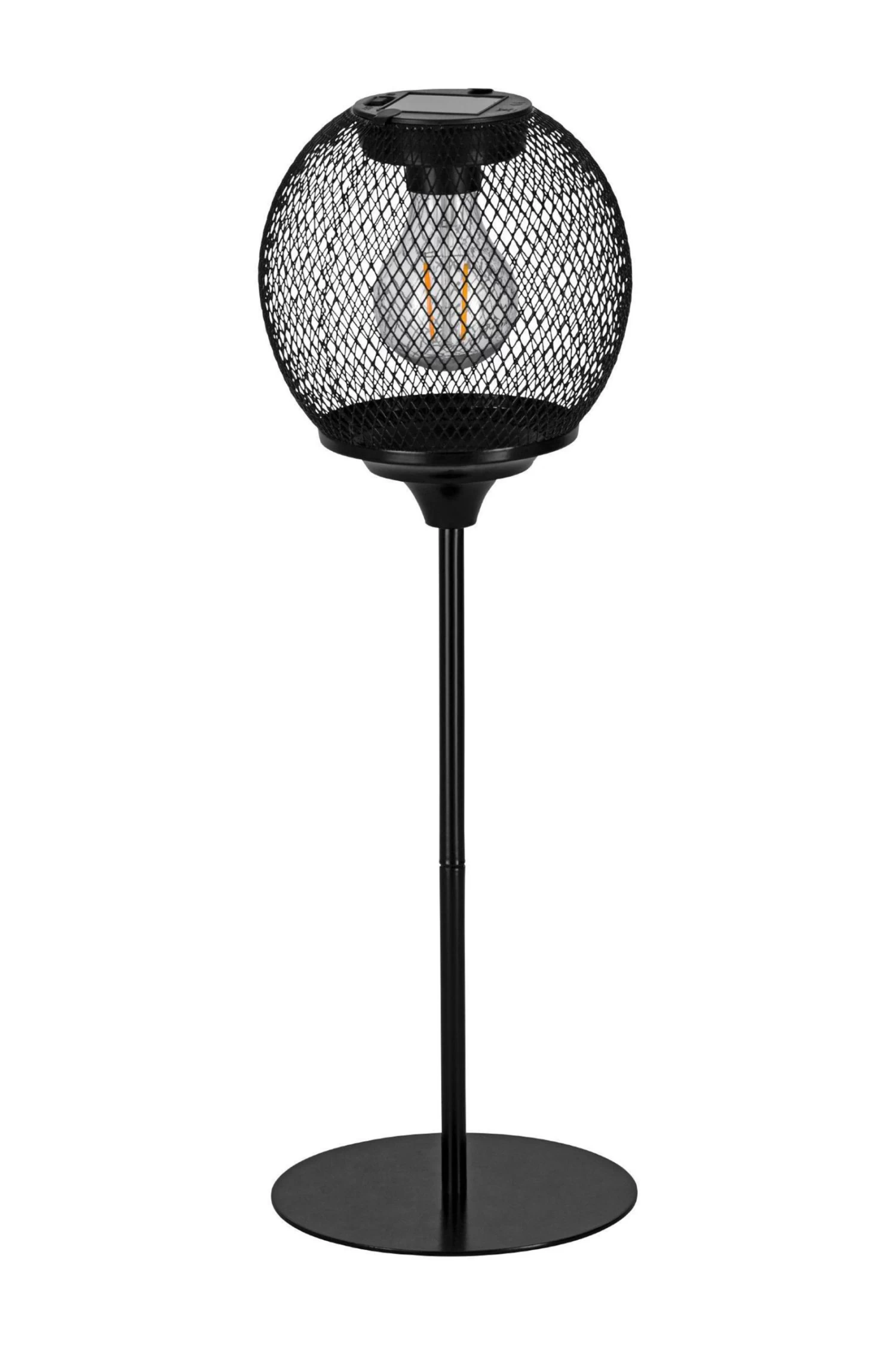 This product is an outdoor solar LED table lamp featuring a monochrome design with a steel mesh lampshade in a black finish. The integrated LEDs produce a warm white light once illuminated, and the product provides an eye-catching lighting effect through the mesh lampshade. The outdoor light has easy operation using the on/off switch and offers between 6 to 8 hours of illumination once charged by the sun. Due to the IP44 rating, the product is suitable for outdoor.