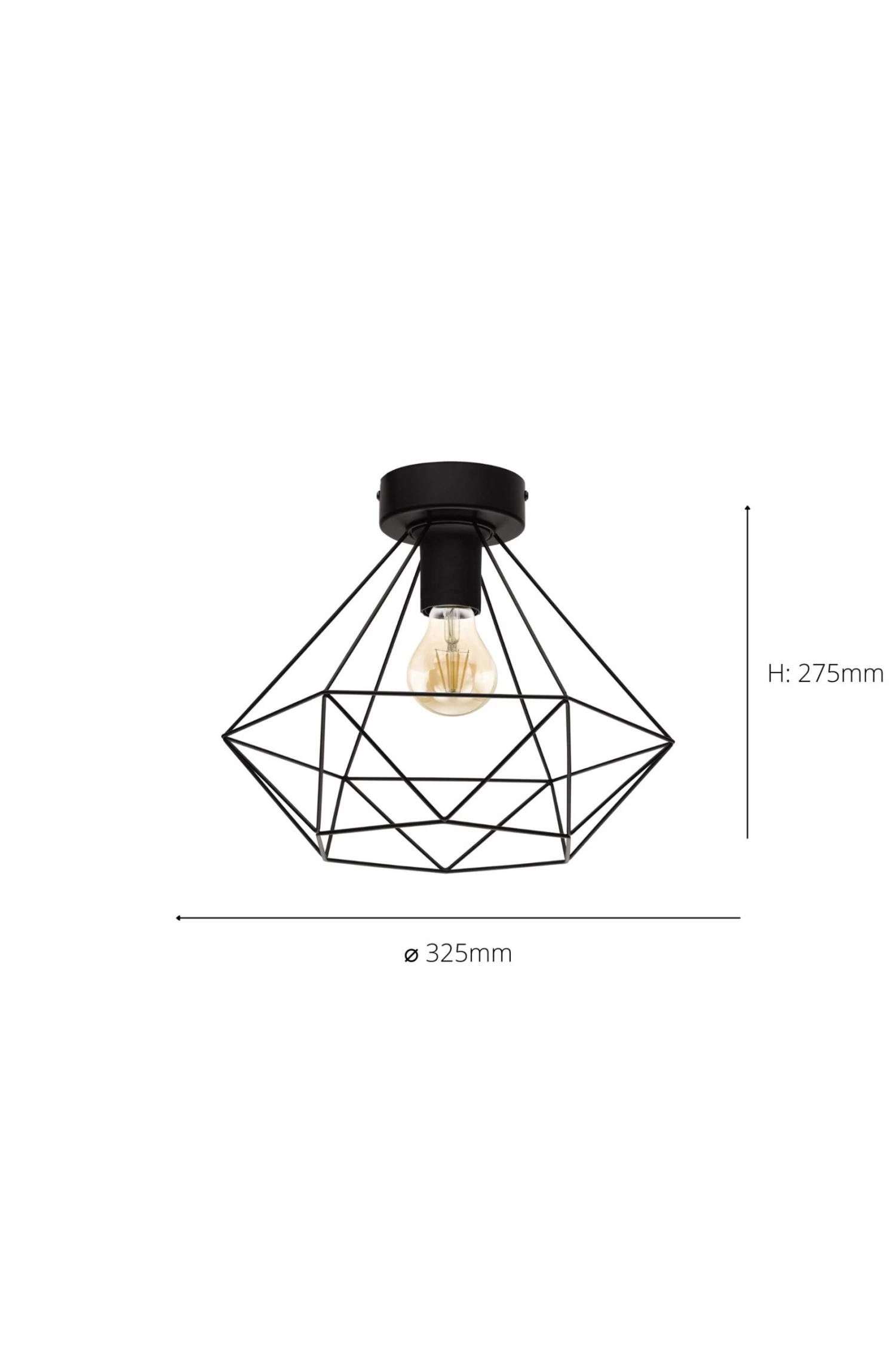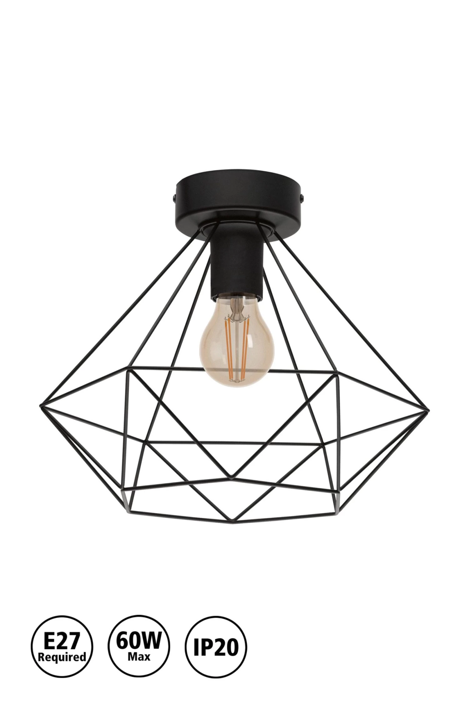 The Tarbes is a ceiling light with a classic black steel finish. The design features an exposed lightbulb and a geometric wire design. The Tarbes adds a touch of industrial chic to your home and would compliment a retro-style lightbulb for maximum impact and to enhance the vintage flair. The Tarbes requires 1 x E27 lightbulb.