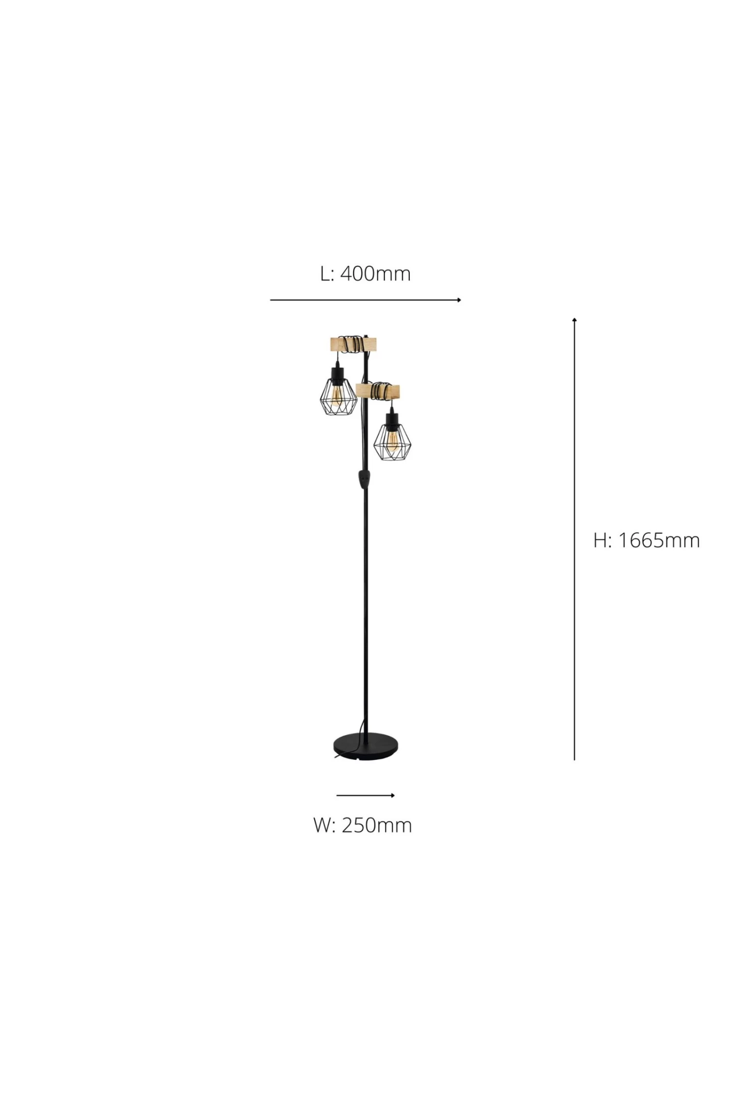 The Townshend 5 is a stylish floor lamp with a circular black steel base, slim stem and two wooden bars suspending shades. The lampshades have a geometric black steel design with an exposed lightbulb design, perfect for pairing with retro-style illuminants for maximum impact. This is a slim and eye-catching floor lamp that adds a touch of vintage charm to your home. This light is IP20 rated, suitable for interior use only. Standard 2 year warranty.