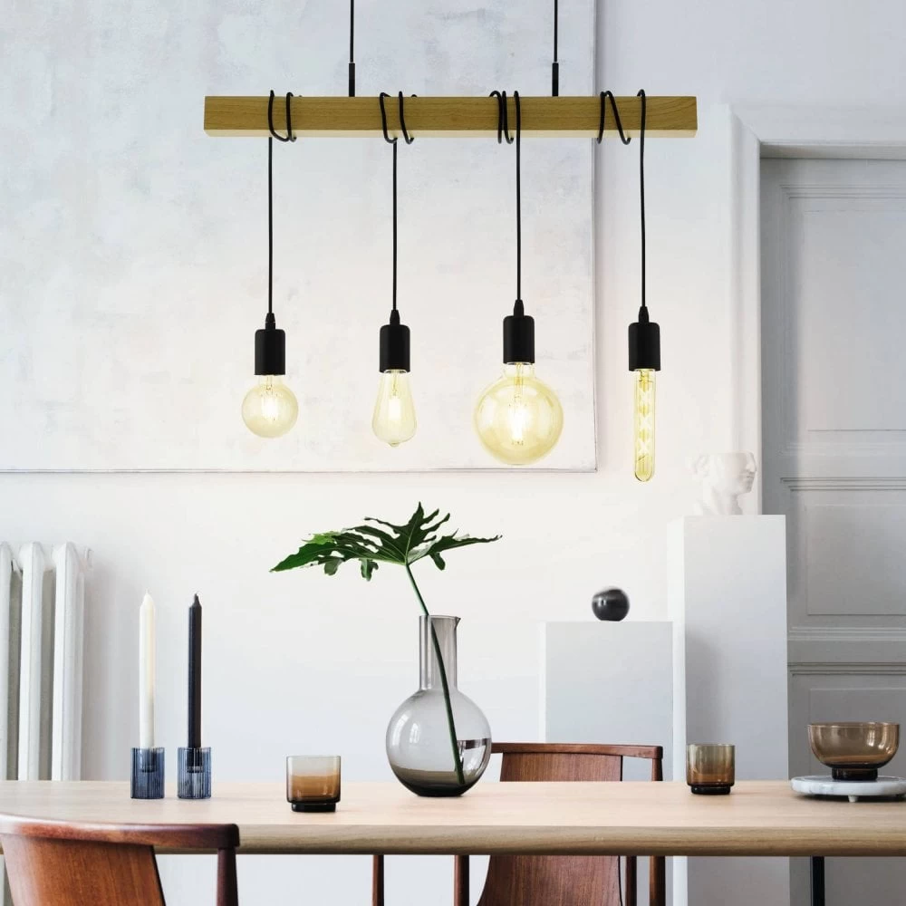 Be the first to review “Eglo Townshend Four Lamp Wooden Bar Pendant With Black Detailing” Cancel reply