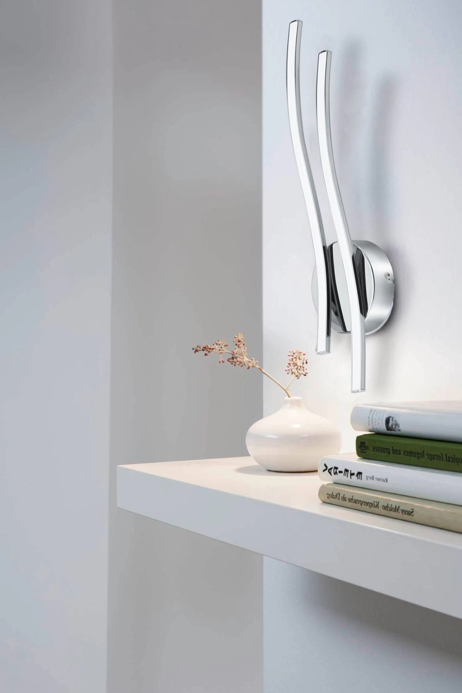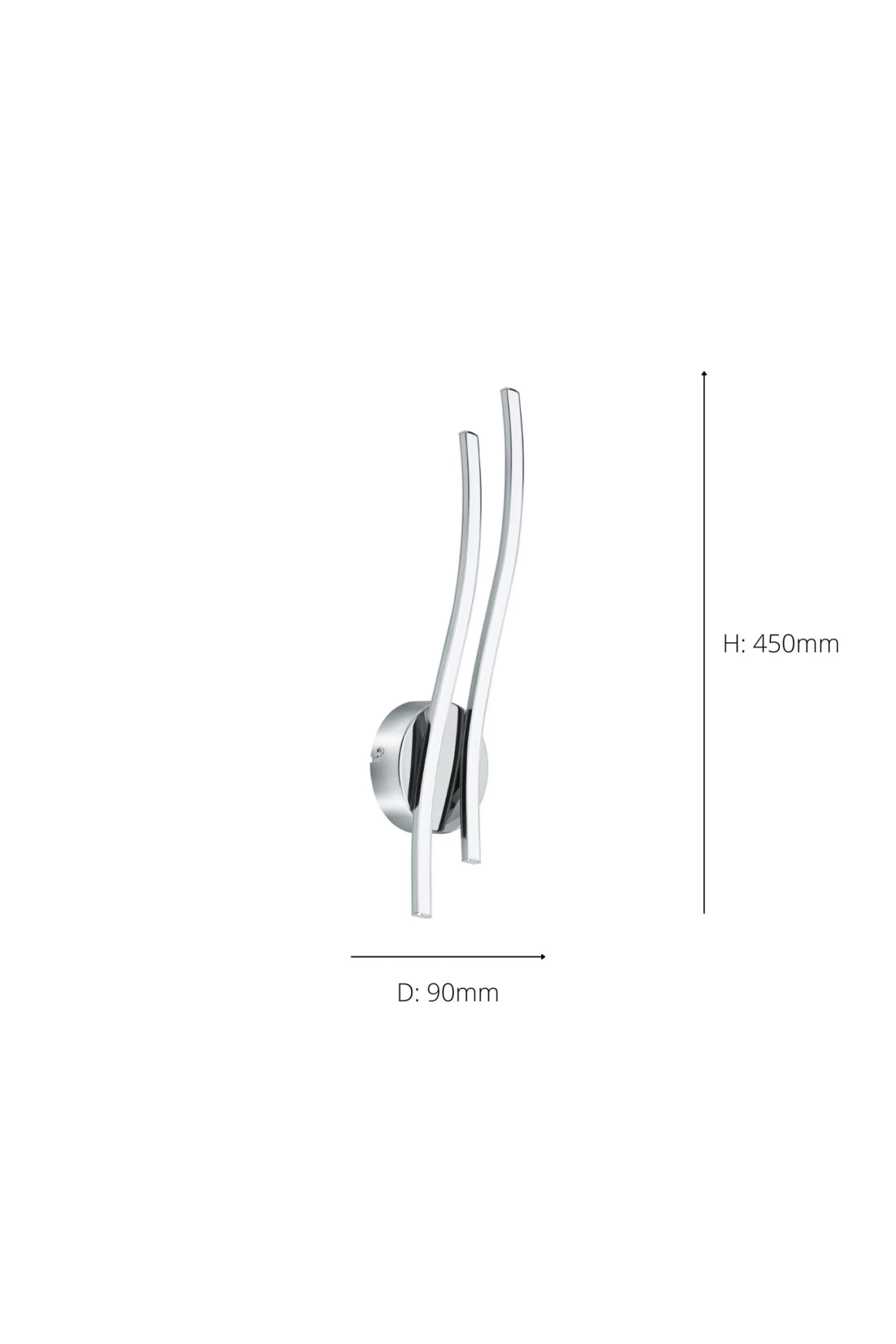 The Valmora is a sleek interior wall light with a circular base and two slightly waved arms. The product has a contemporary polished chrome finish and plastic diffusers, meaning when illuminated the light is diffused beautifully and creates a welcoming glow. The fitting features integrated LED components which promotes energy efficiency and cost-saving capabilities and produces a pleasant warm white light. The product is a modern look at interior lighting and is a great choice to create an accent or ambient lighting in your home. This light is IP20 rated, suitable for interior use only. 5 year warranty.