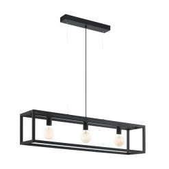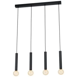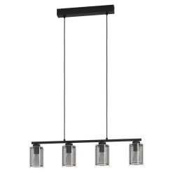 Eglo Floresta Four Lamp Linear Pendant In Black With Clear Glass & Wire Mesh Diffusers