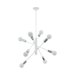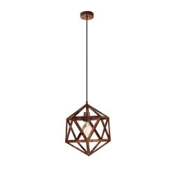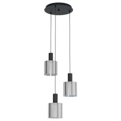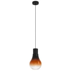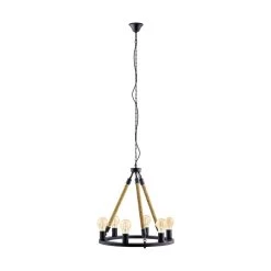 Eglo Edale 700mm Six Lamp Pendant In Black With Wood Detailing And Cappuccino Shades